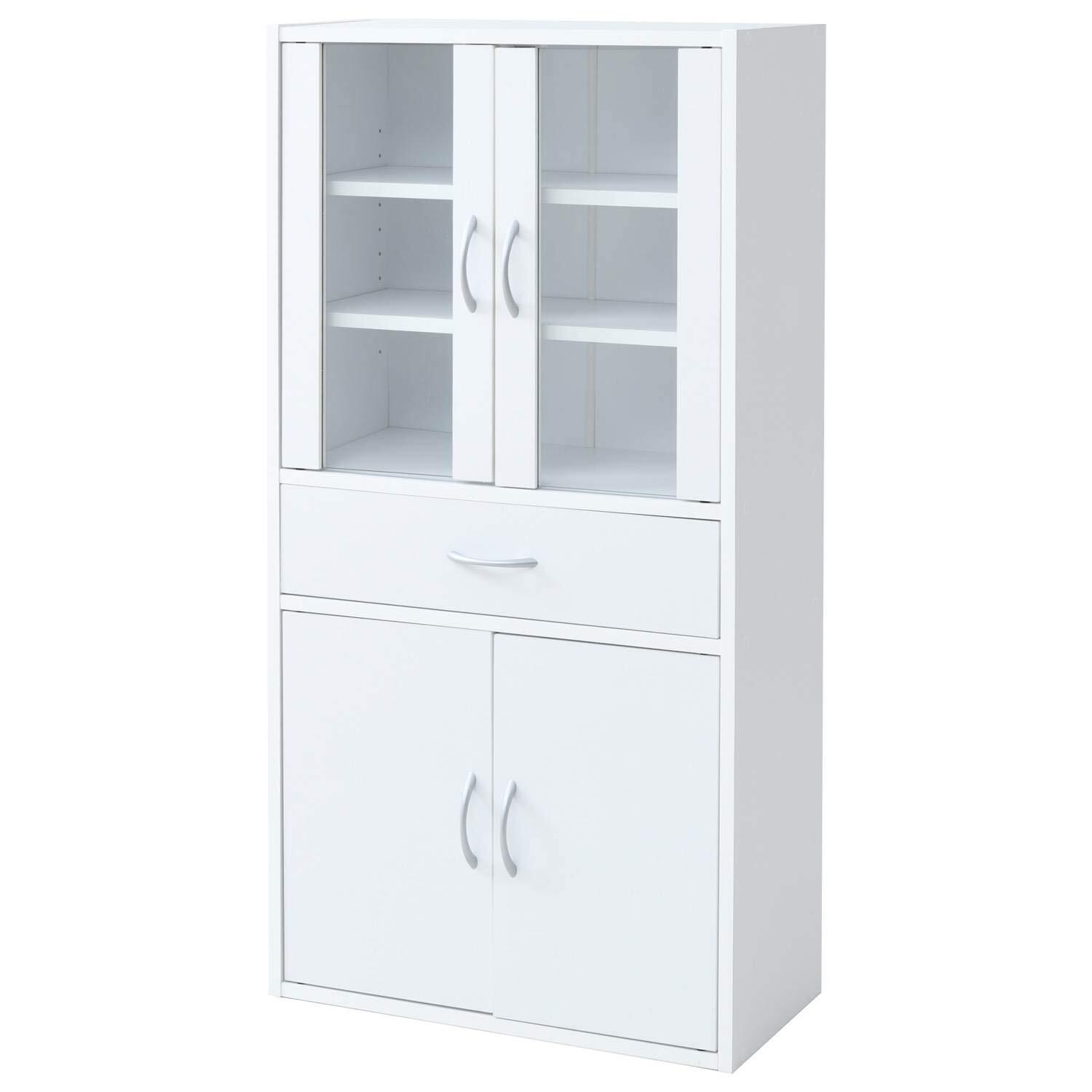 山善(YAMAZEN) 食器棚 幅60×奥行29×高さ120cm 引き出し マグネット式 棚板可動 組立品 ホワイト CCB-1260(WH)