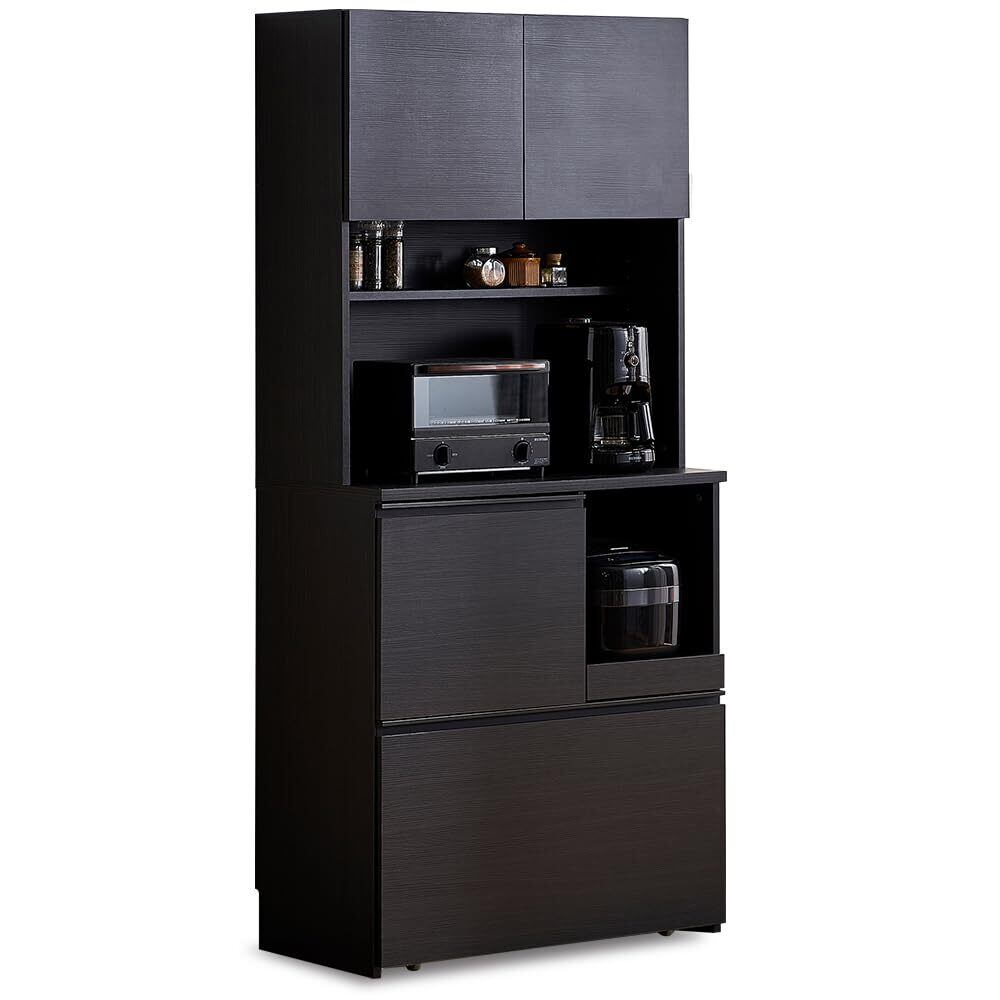 \【◆アイリスオーヤマ キッチンラック 食器棚 (ブラック)】/洗練されたデザインで機能性抜群のキャビネット!