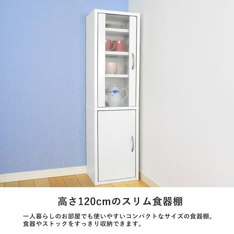 キッチンラック 食器棚 スリム 幅32cm 高さ120cm ミドルタイプ コンパクト 薄型 一人暮らし 扉タイプ ガラス扉 シンプル ダークブラウン 組立品