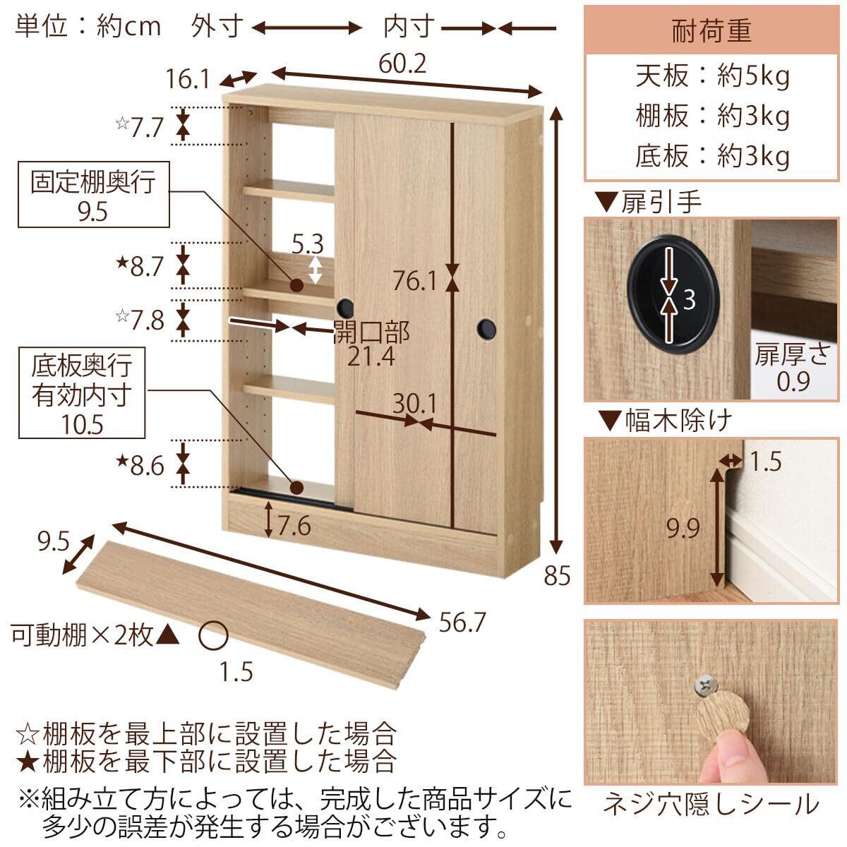 耐荷重 天板:約5kg 棚板:約3kg 底板:約3kg / 可動棚:2枚