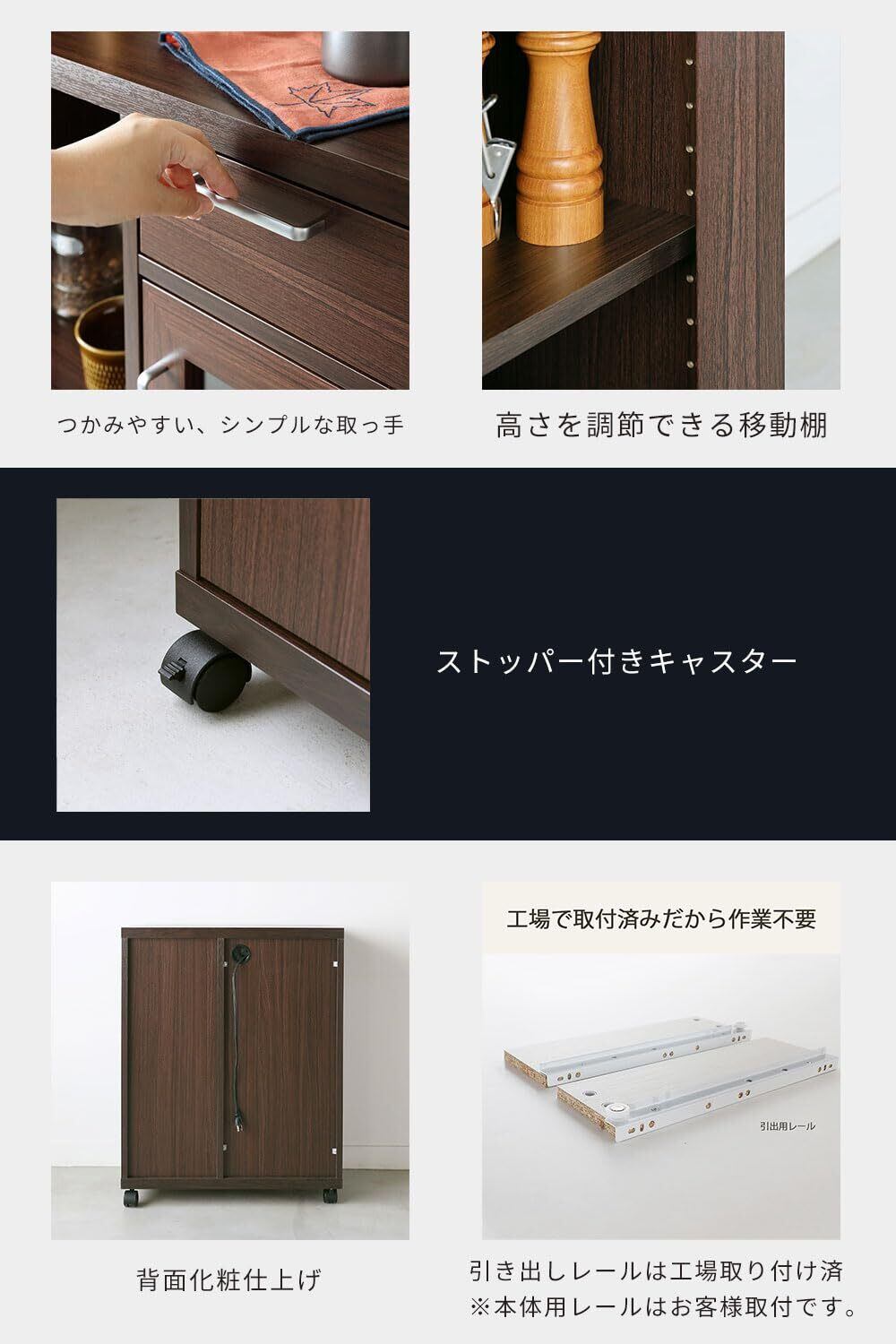 ✨【シンプルで機能的なデザイン!】この白井産業カウンターワゴンは、ダークブラウン木目柄が特徴で、どんなインテリアにも溶け込むベーシックデザイン。キッチンやリビングでスタイリッシュに使用できます。