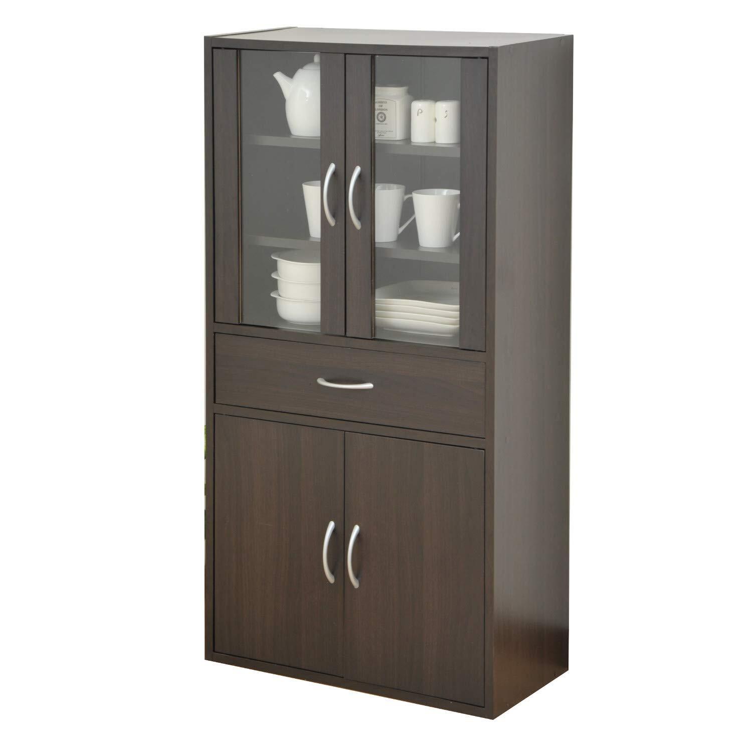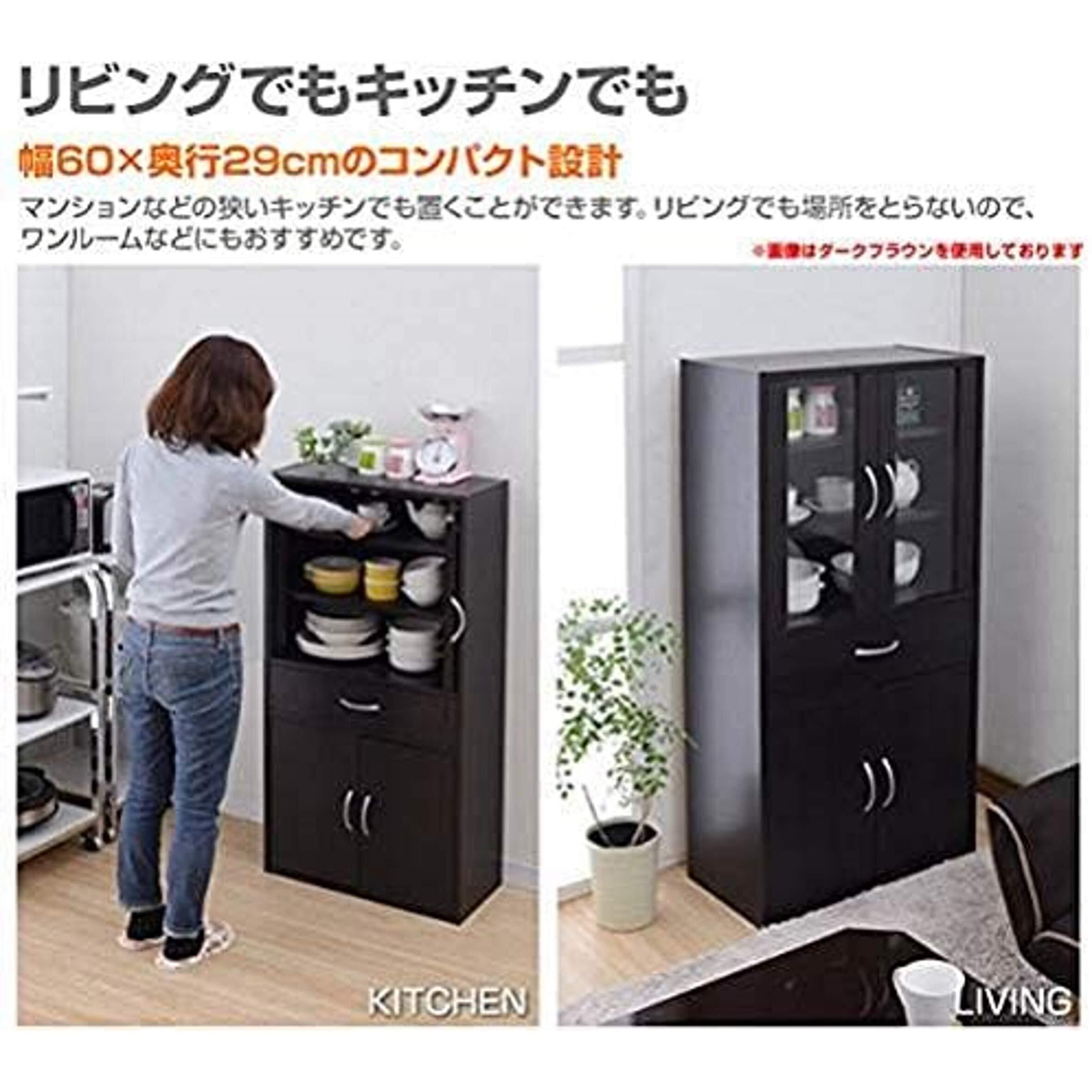 \【◆山善(YAMAZEN) 食器棚 キャビネット キッチン収納 引き出し付き ダークブラウン (幅60×奥行29×高さ120cm)】/理想のキッチン収納で毎日をスッキリ!