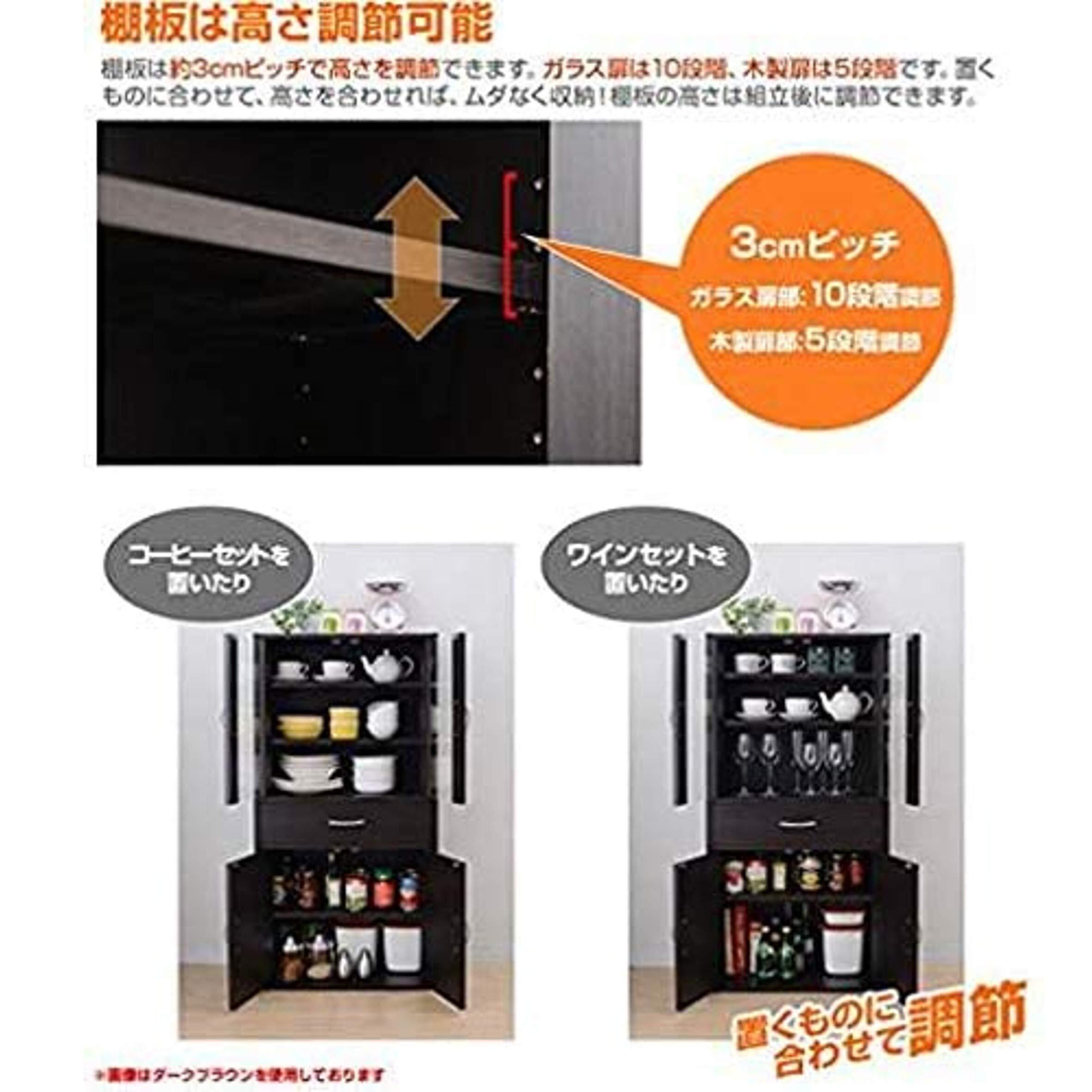 [山善(YAMAZEN)] 食器棚 キャビネット キッチン 収納 引き出し付き ガラス扉 幅60×奥行29×高さ120cm 棚板可動 組立品 ダークブラウンCCB-1260(DBR)
