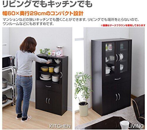 ✨幅60cm、奥行29cmとコンパクトな設計で、限られたスペースでもしっかり収納。高さ120cmの設計により、上段の収納スペースも有効利用でき、食器や調理器具を整理して収納できます。