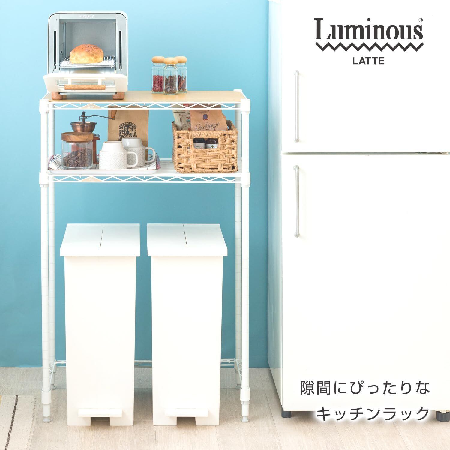 ✨【洗練されたルミナスラテデザイン!】ドウシシャのキッチンラックは、暖かみのあるルミナスラテカラーが特徴。どんなキッチンにも自然に溶け込み、スタイリッシュな印象を与えます。