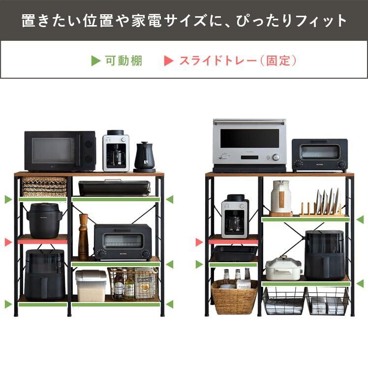 ✨スライド棚が付いており、電子レンジや炊飯器をスムーズに収納・取り出しが可能。作業効率を考えた設計で、調理の際もストレスを軽減します。
