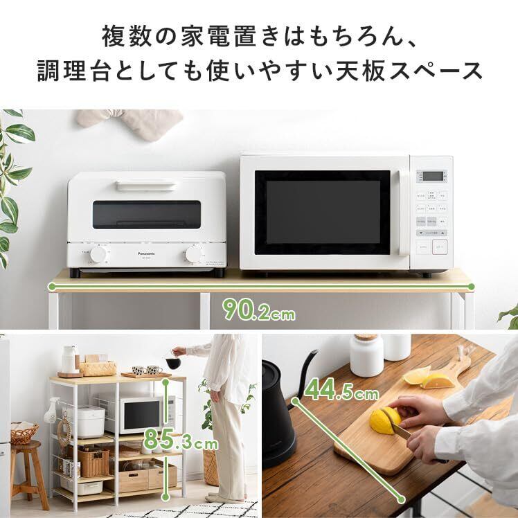 エア・リゾーム キッチンカウンター レンジ台 キッチンボード レンジラック キッチンラック キッチン 収納 スライド棚付き emery(エメリー) 90cm幅 ナチュラル×ホワイト