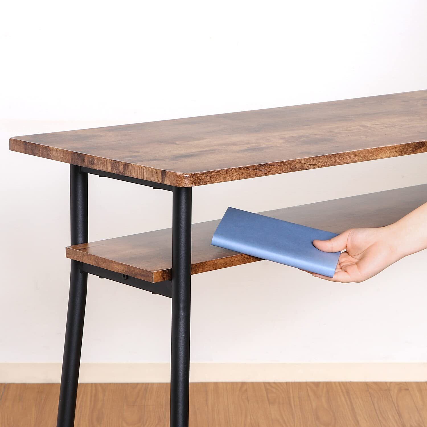 ✨幅120cm、奥行40cm、高さ87cmと、スリムながらも安定感のあるサイズ感で、作業スペースやカフェテーブルとして快適に使用できます。収納棚付きで、必要な物をすっきりと整理整頓できます。