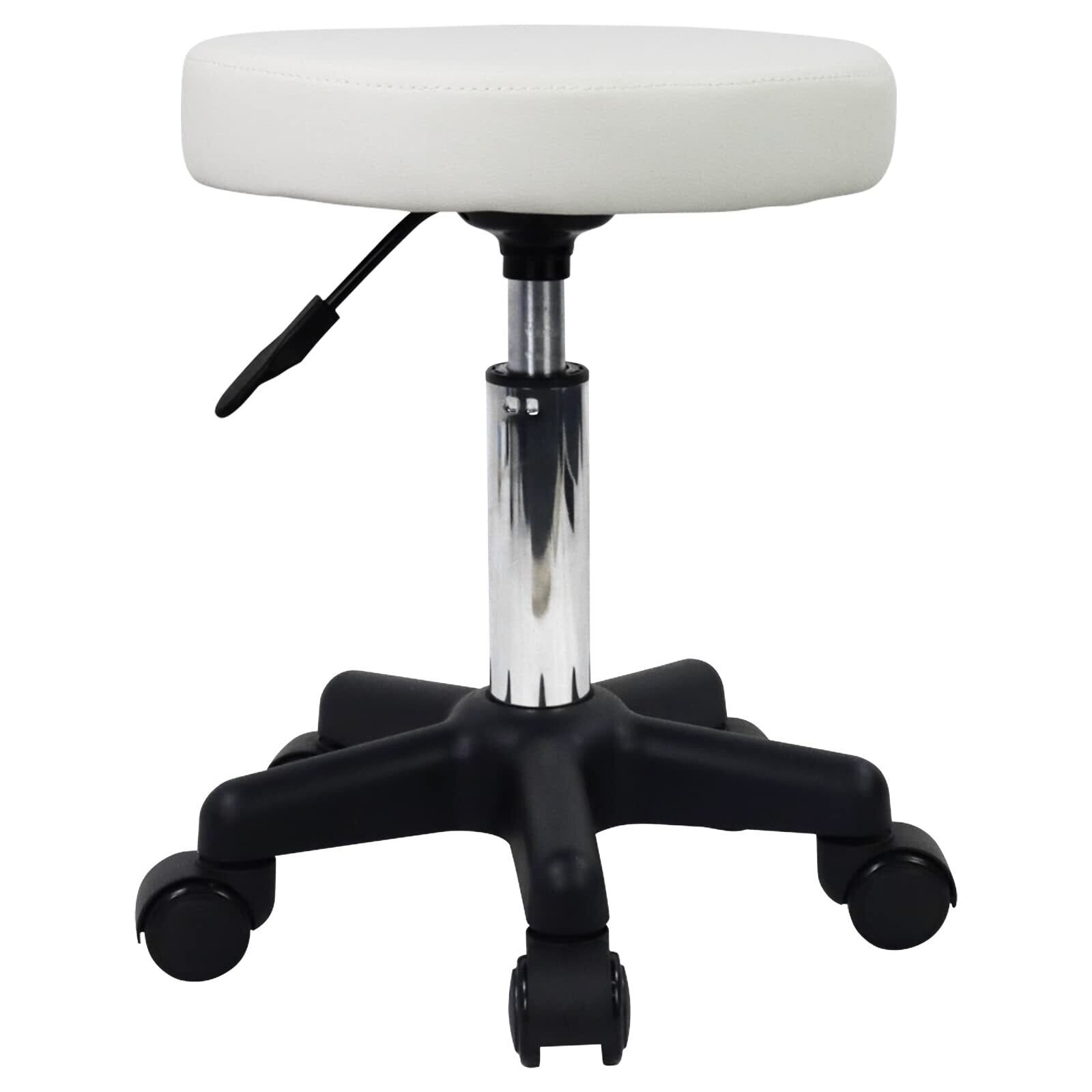 FURWOO スパ椅子 化粧椅子 サロン美髪美容ツール 小さな静音ローラー 高さ調節可能 白いスツール