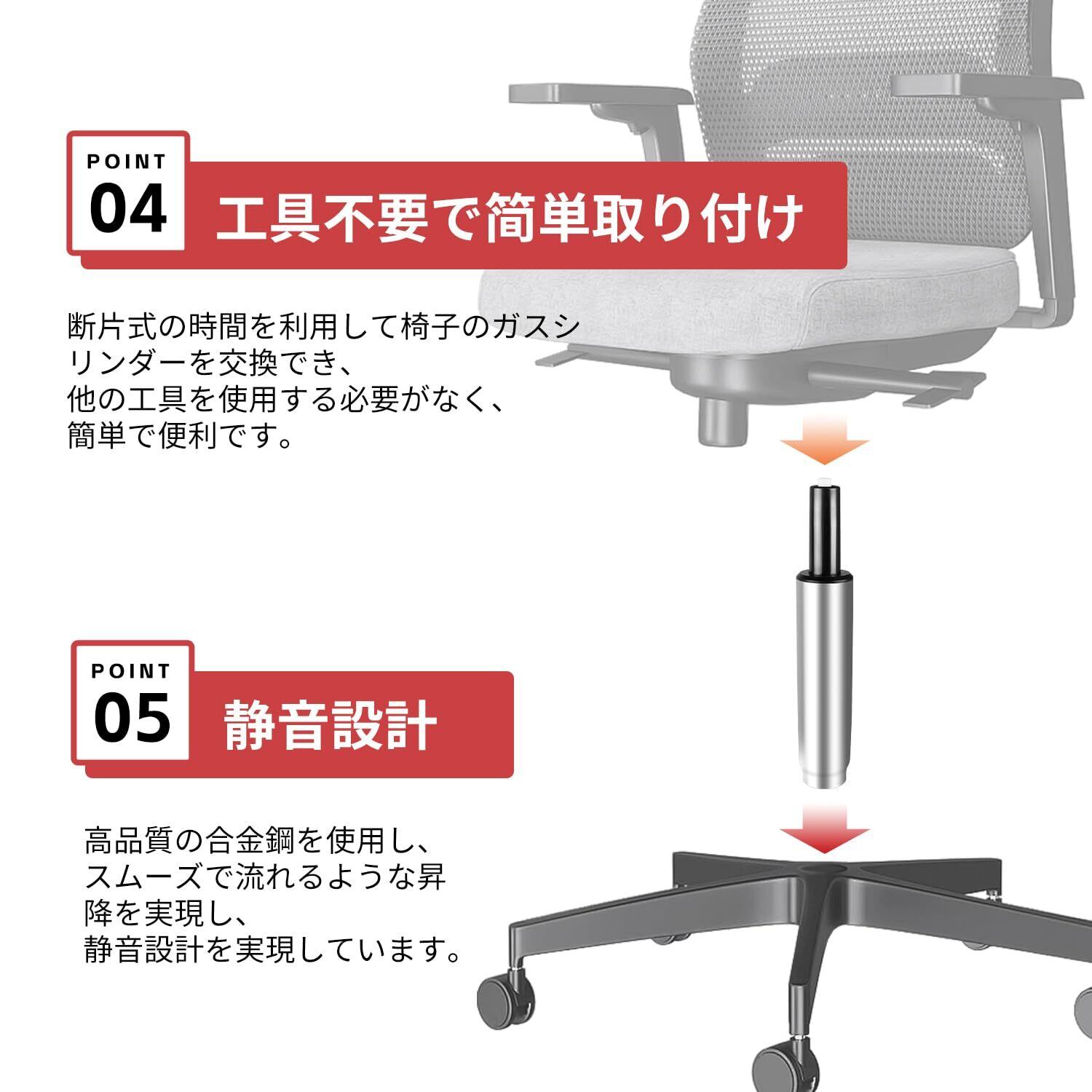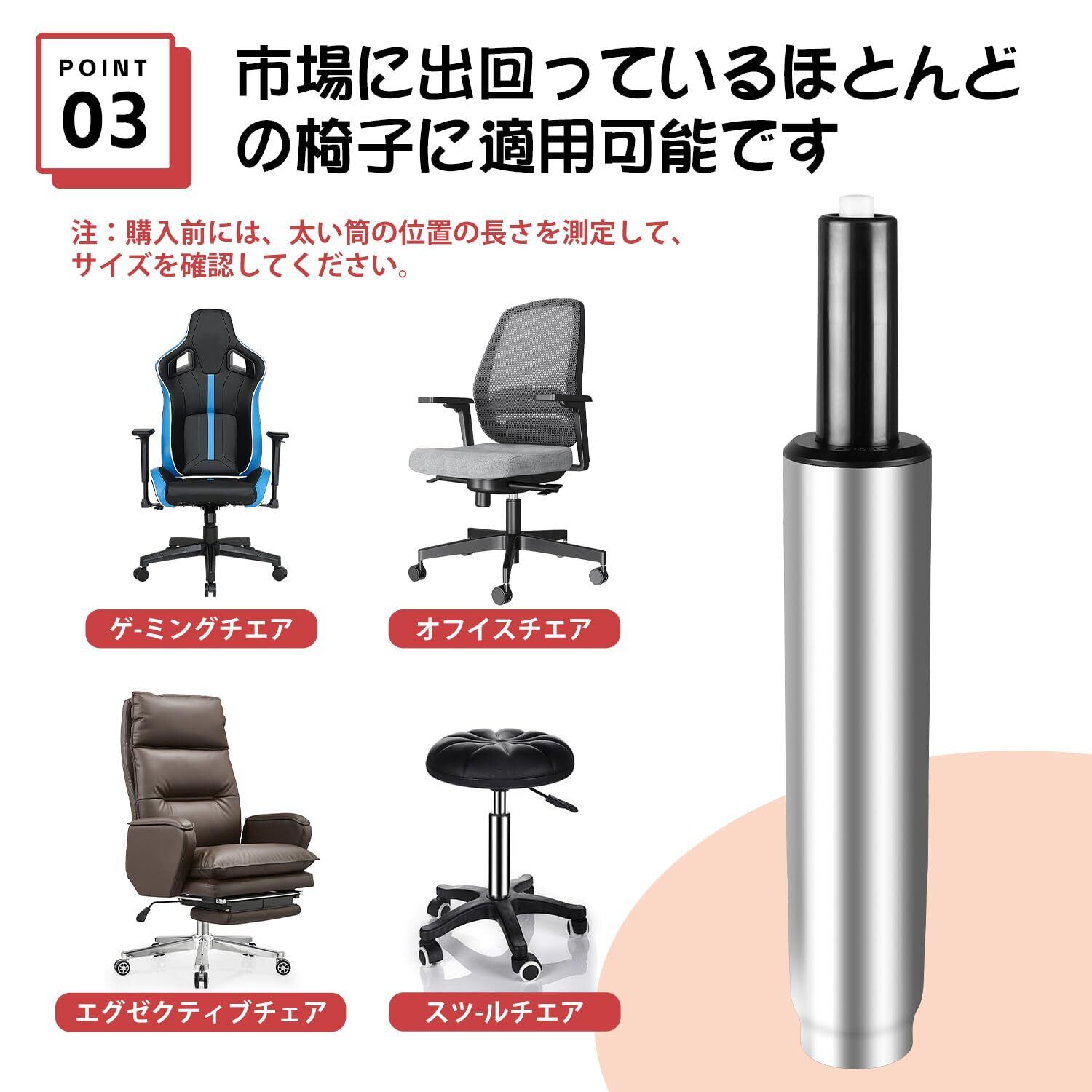 ✨このガスシリンダーは360°回転可能なデザインで、チェアの利便性を高めます。作業や日常生活での動きがスムーズになり、効率的な使用ができます。