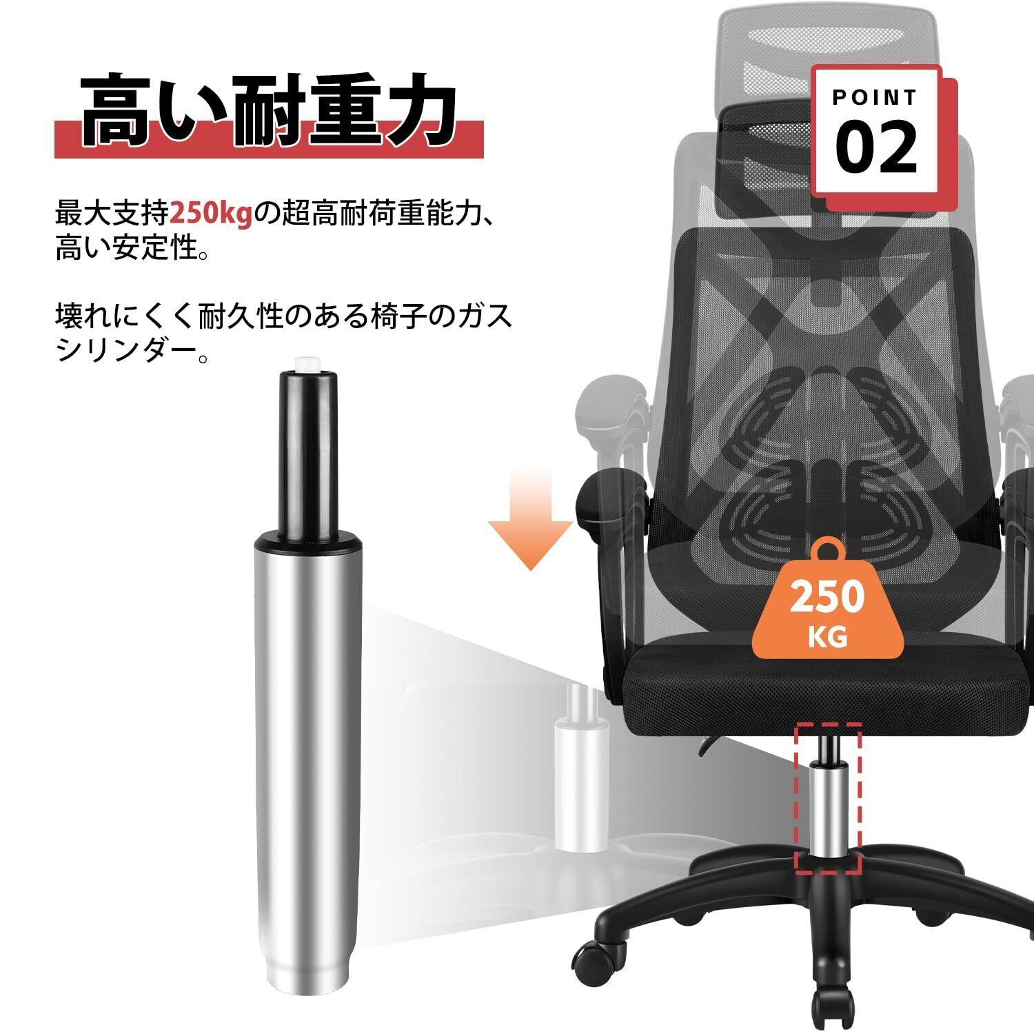✨直径120mmのガスシリンダーは、スムーズな昇降機能を備えています。お好みの高さに簡単に調整できるため、快適な座り心地をいつでも実現可能です。