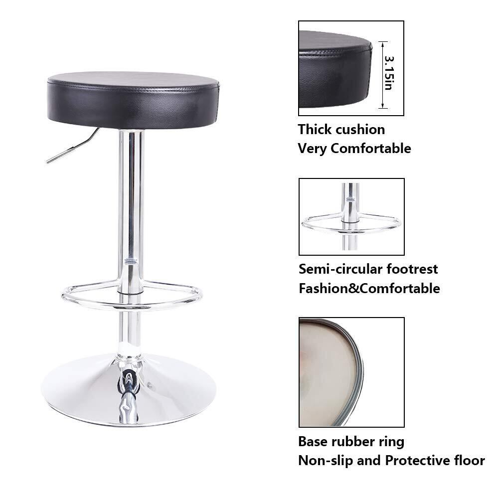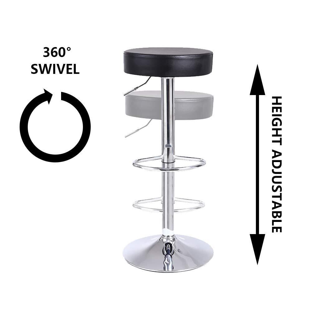 KKTONER 回転昇降バースツール 高さ調節可能 PUレザー フットレスト付き 丸椅子 ホームキッチンカウンターチェア 回転椅子 Mサイズ ブラック (黒)