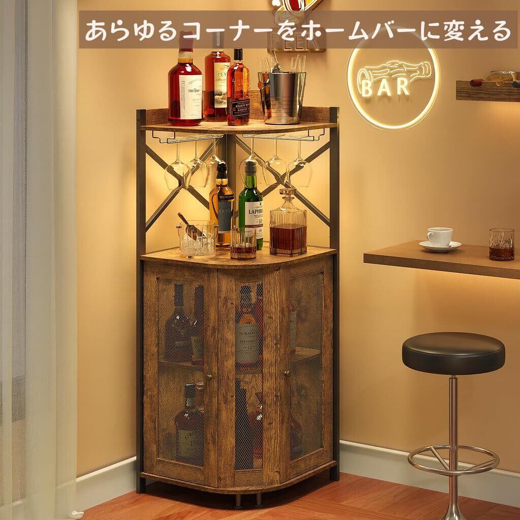 \【◆酒棚 ウイスキー棚 多機能コーナーワインキャビネット ドア付き自立型ワインラック】/スタイリッシュで機能的なバーキャビネット!