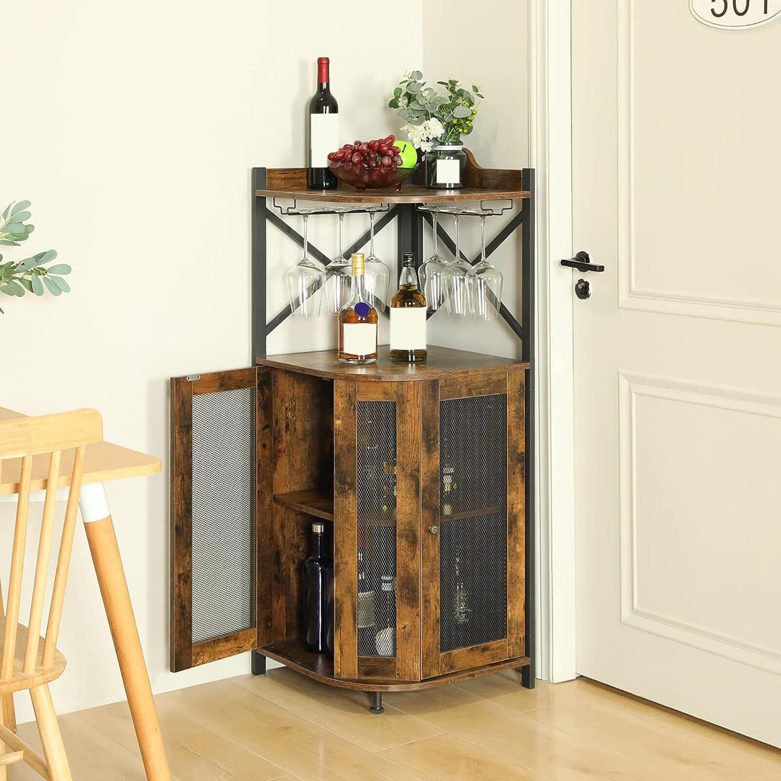 酒棚、ウイスキー棚、多機能コーナーワインキャビネット、ドア付き自立型ワインラック、コーナーボトルフェンス、調節可能な棚、ホームバー、インダストリアルスタイルのバーキャビネット、キッチン/玄関/リビングルーム/ダイニングルーム (A)