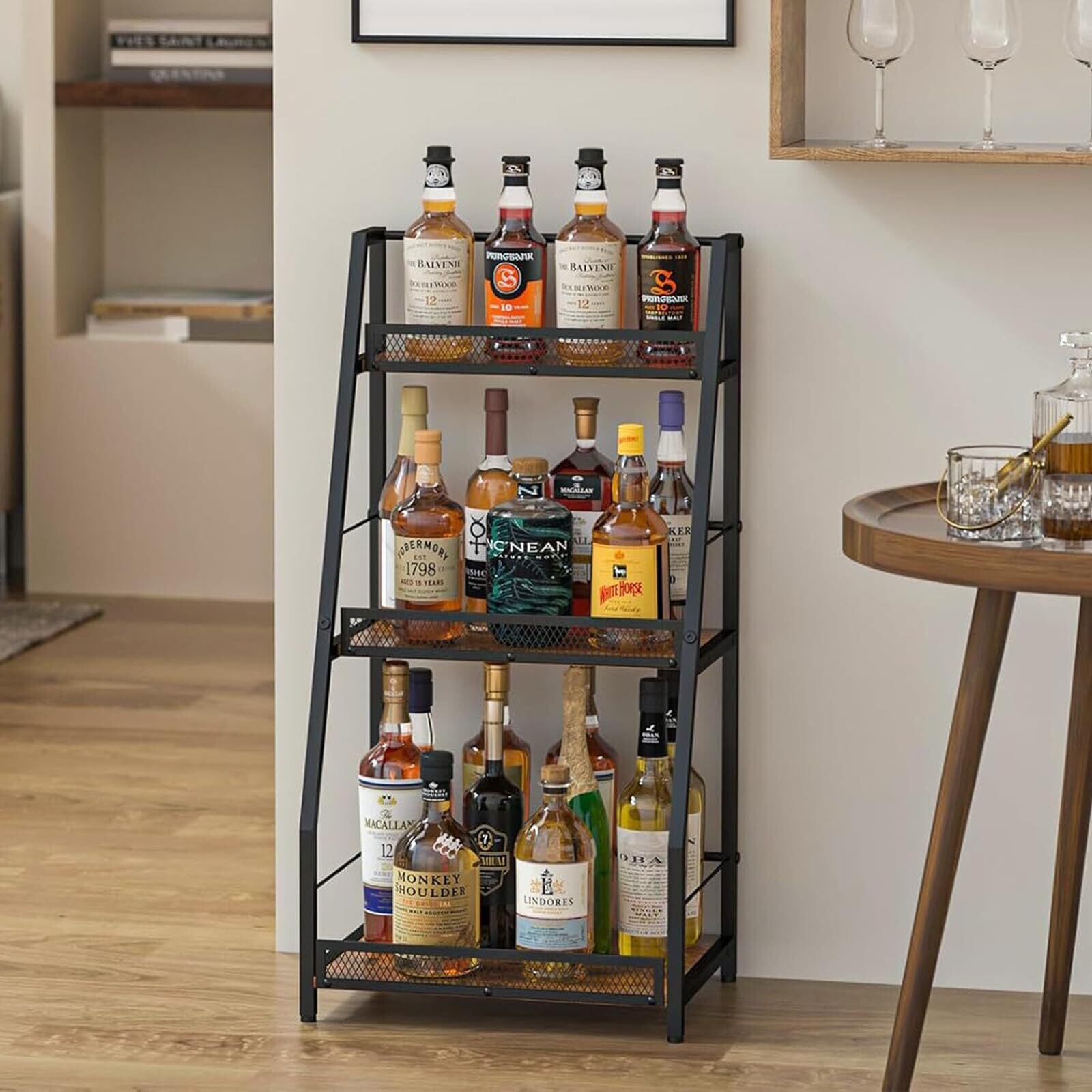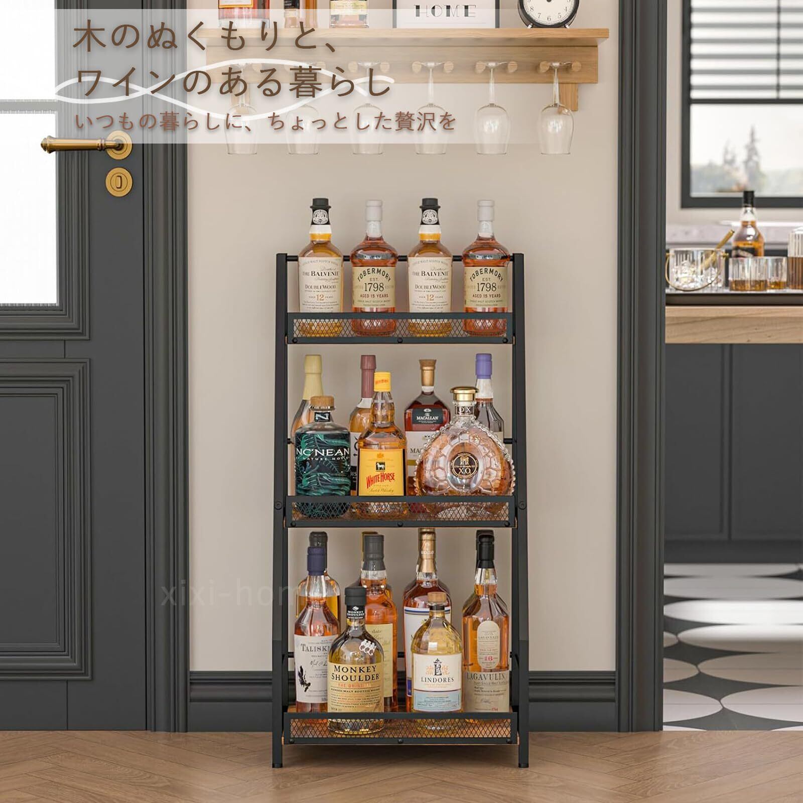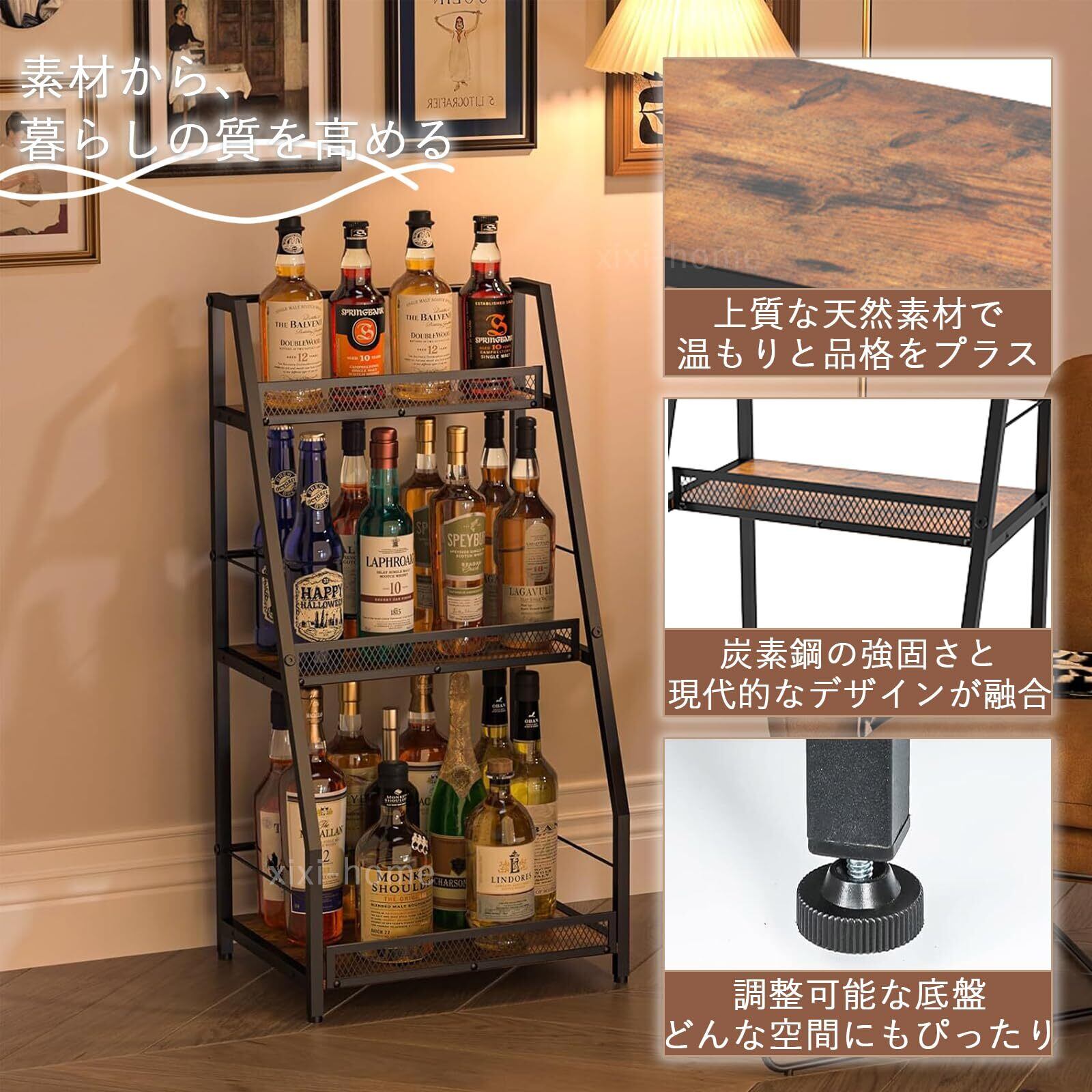 ✨3段の設計により、ワインボトルやウイスキーなど、多様なお酒をしっかりと収納できます。調理器具やデキャンタ、グラスも収まるので、キッチンやホームバーでの使用に最適です。