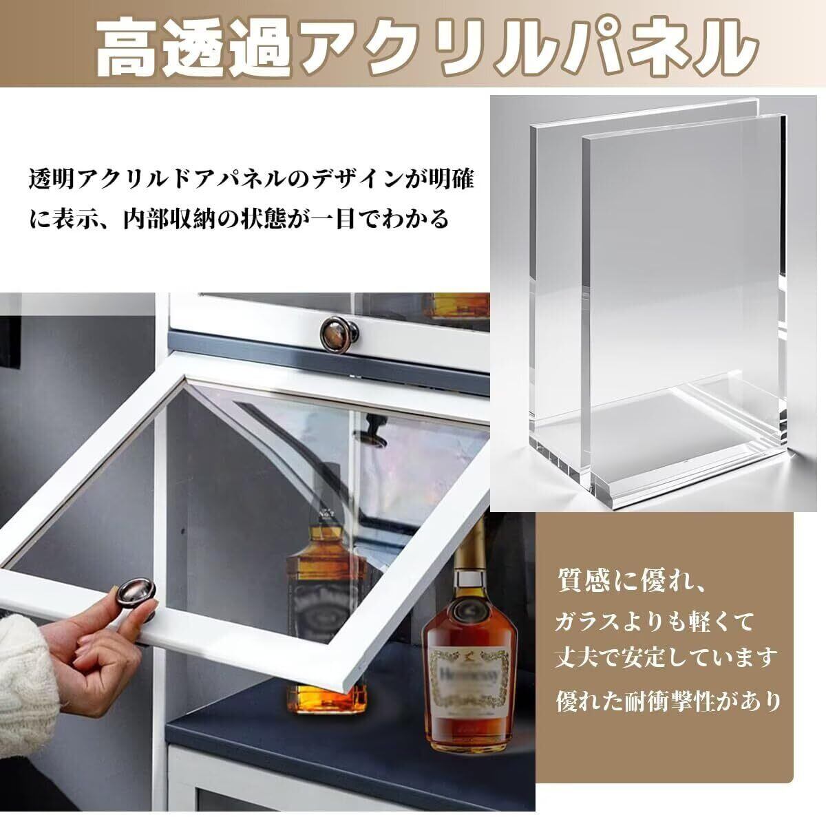 ✨クリアなアクリルパネルは、ボトルの美しさを引き立てながら、中身を一目で確認できます。壊れにくく、丈夫な素材を使用しているため、日常使いでも安心です。