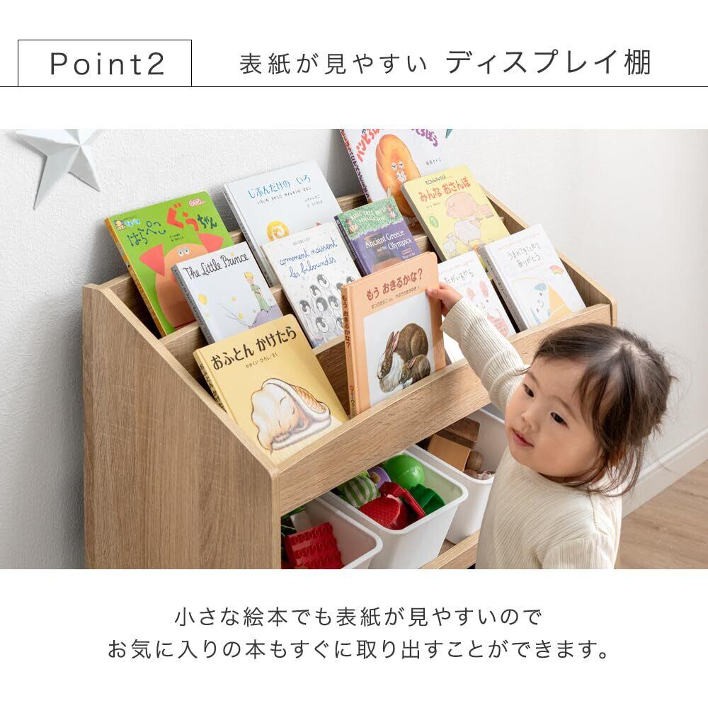 【スタッフのおすすめポイント】・絵本ラック └ 表紙が見えやすく選びやすい! ・中段は置くものに合わせて高さ&角度調整OK ・下段はおもちゃやぬいぐるみのお片付けに ・お部屋に馴染むシンプル&木目調デザイン