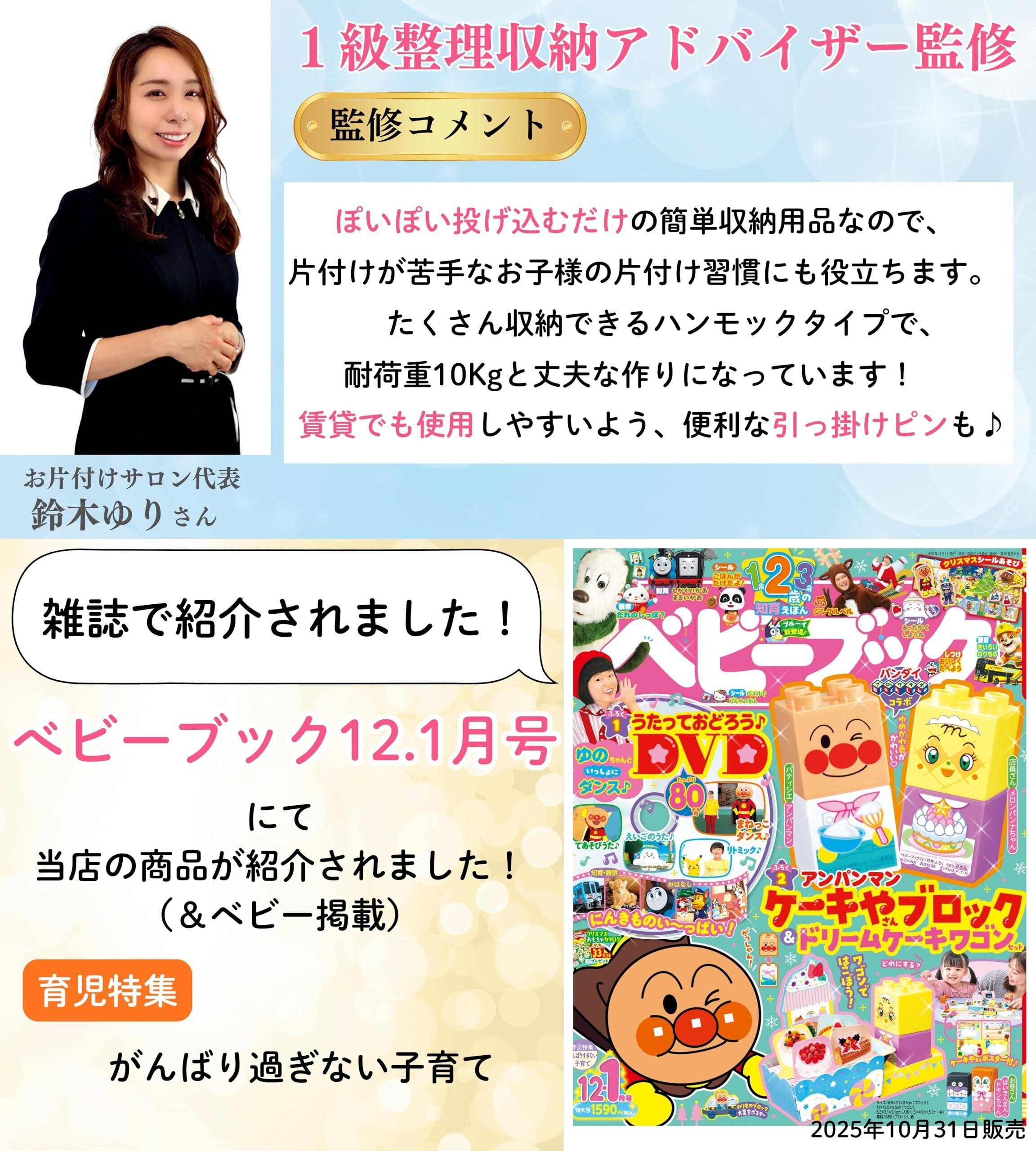 ✨【おもちゃの整理整頓をお手伝い!】ベビーブック掲載×整理収納アドバイザー監修のこちらのぬいぐるみ収納ハンモックは、お子様の大好きなぬいぐるみやおもちゃをスッキリと収納するために設計されています。お部屋をすっきり整え、遊び終わった後も簡単に片付けができます。