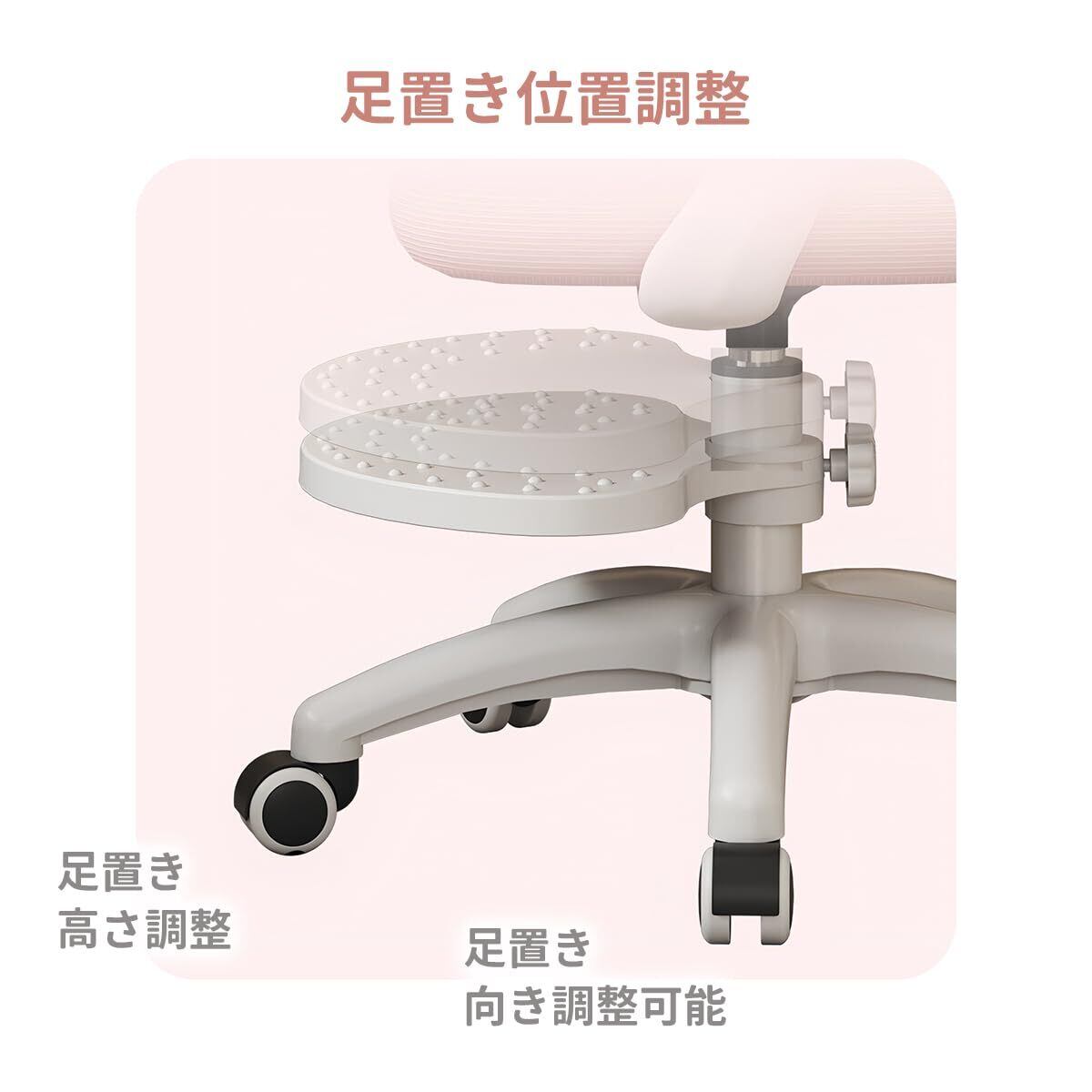 【便利な足置き付き】付属の足置きは昇降と取り外しが可能です。足元を快適に支えることができ、学習中の疲れを軽減します。また、取り外し可能な設計なので、必要に応じて使用しない場合も簡単に取り外すことができます。