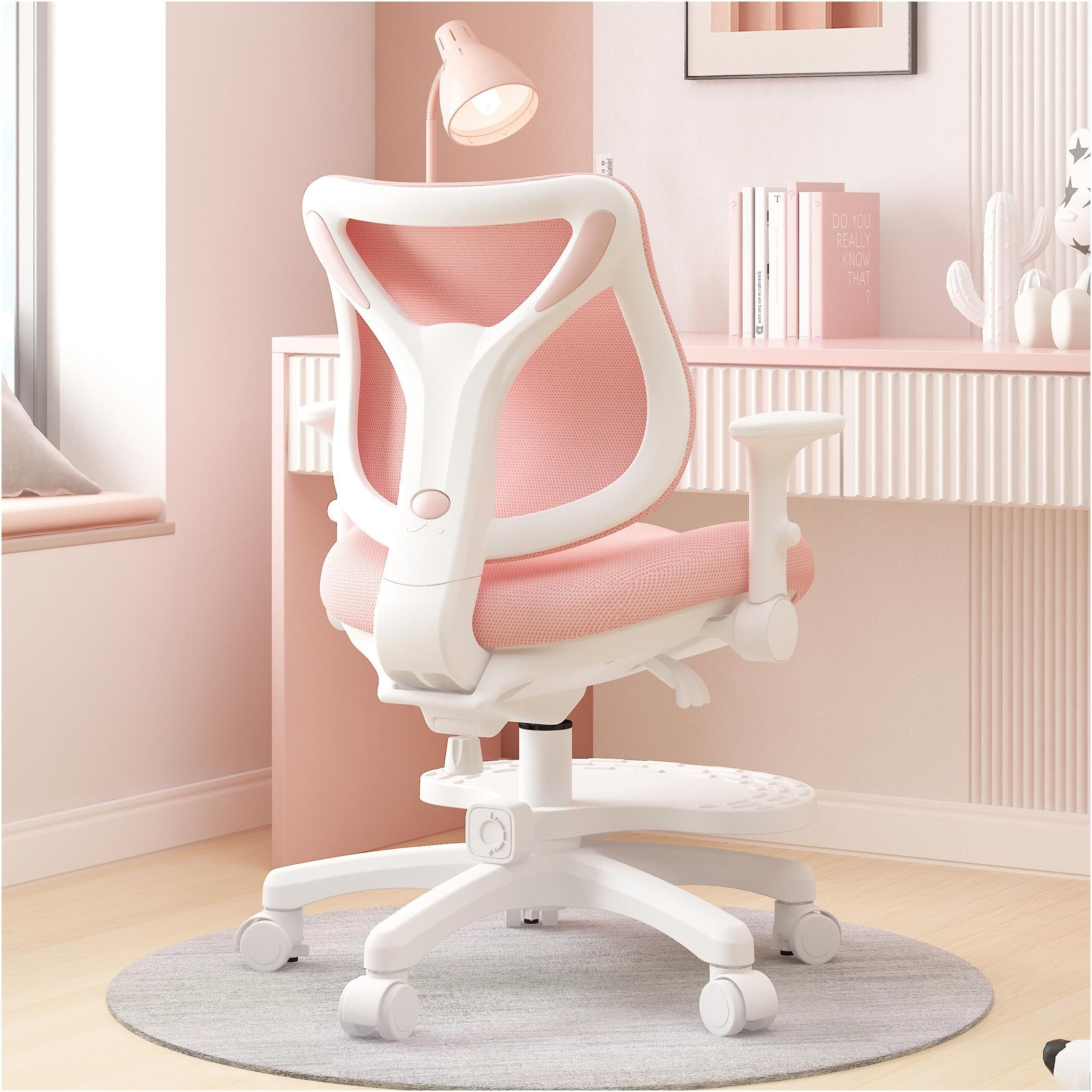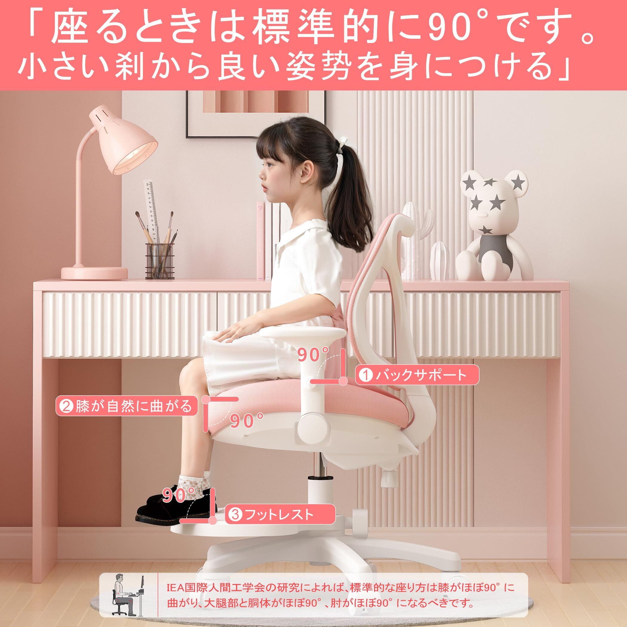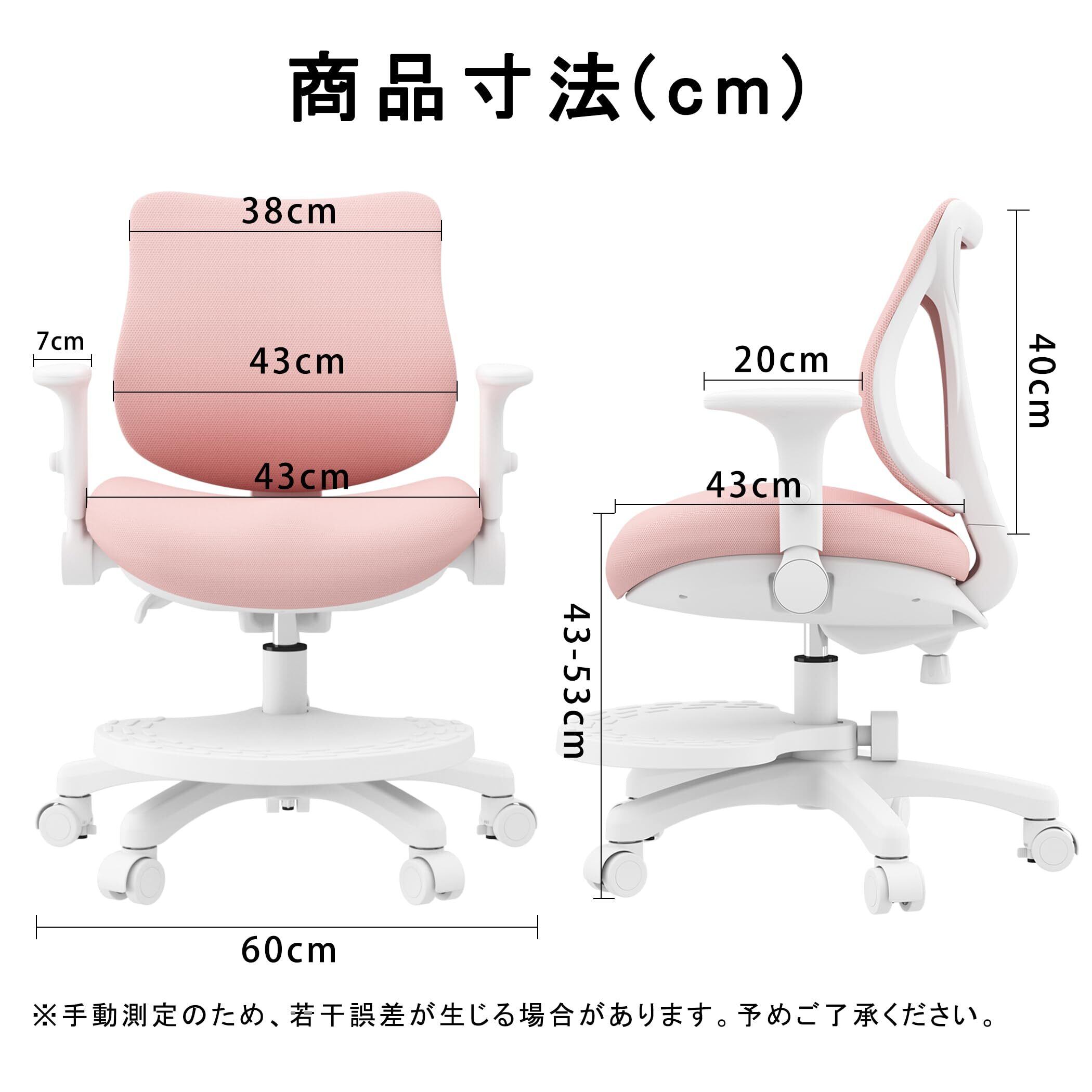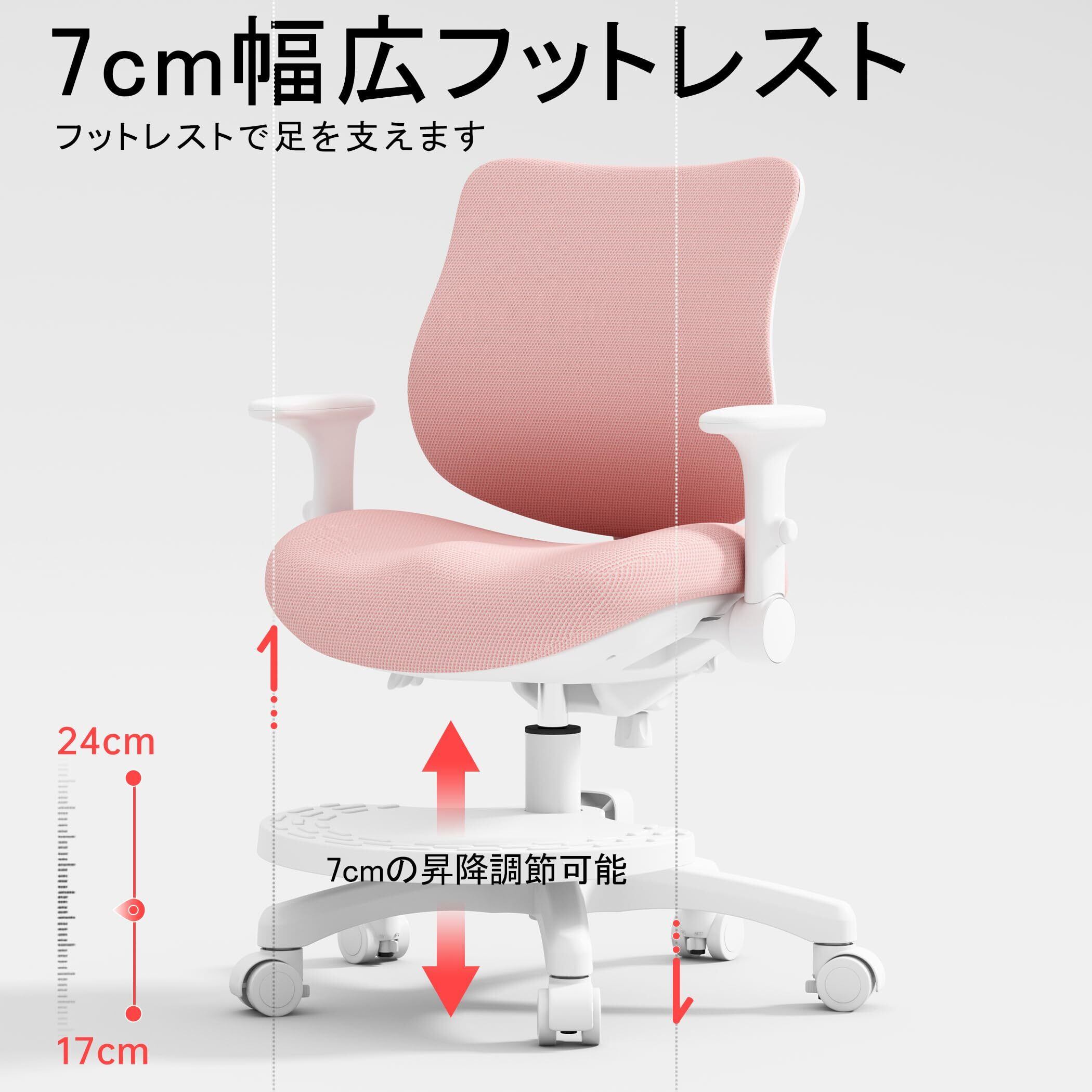 MOCHHOFU学習椅子 勉強椅子 小学生 子供 学習チェア 回転 勉強机 椅子 キャスター付き 背もたれ調節 高さ調節 かわいい 座面高さ調節可能 姿勢矯正 腰が痛くならない コンパクト 通気性強い 人間工学デザイン 足置き 新学期 新生活 かわいい(Pink)