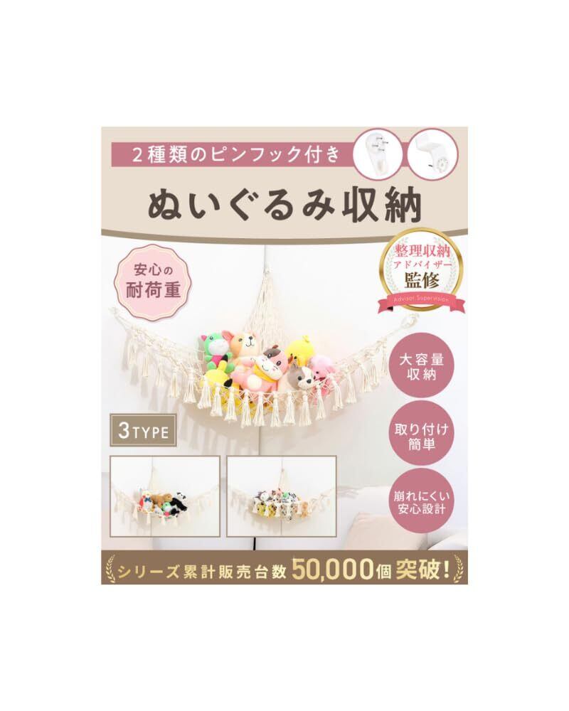 【NZ-base】ぬいぐるみ 収納 【整理収納アドバイザー監修】耐荷重約10kg 〈多点留めフックピン付き〉おもちゃ収納 壁掛け 子供部屋 大きいぬいぐるみ 大容量