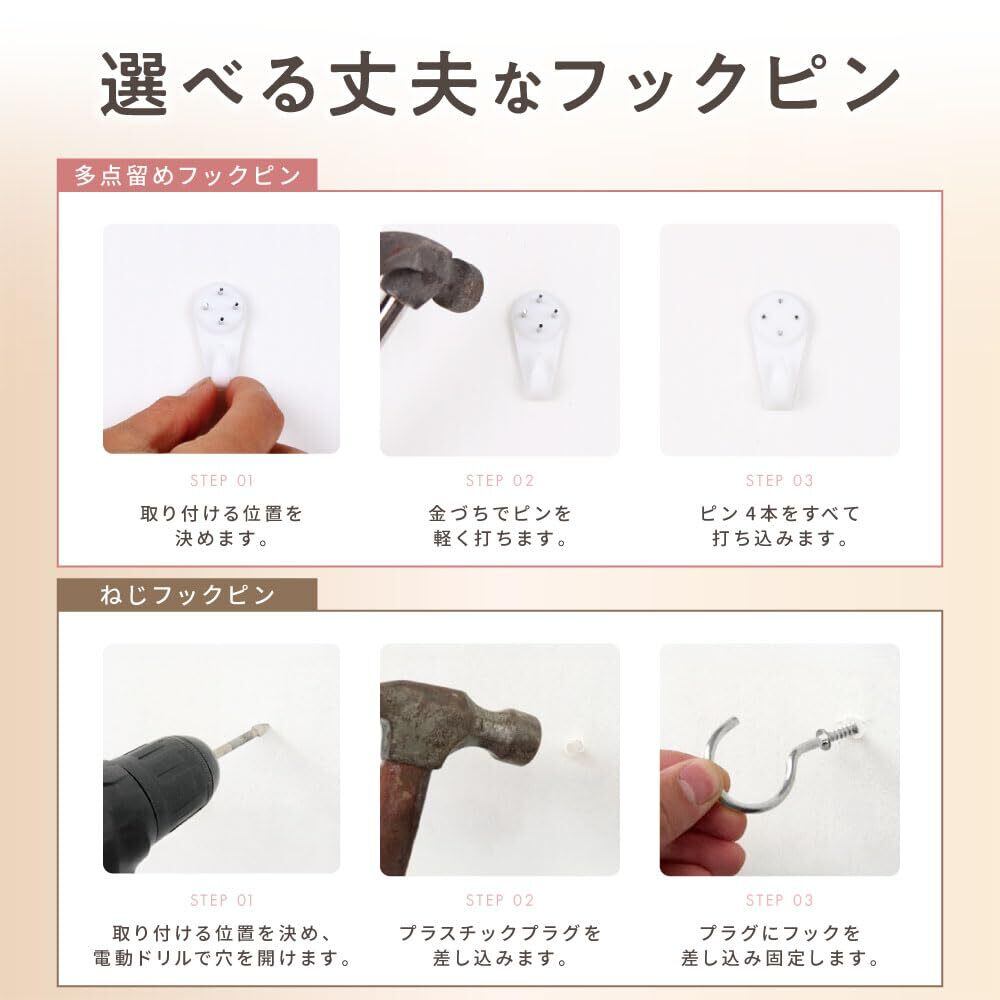 特徴 多点留めフックピン付き, 耐荷重10kg, 丈夫