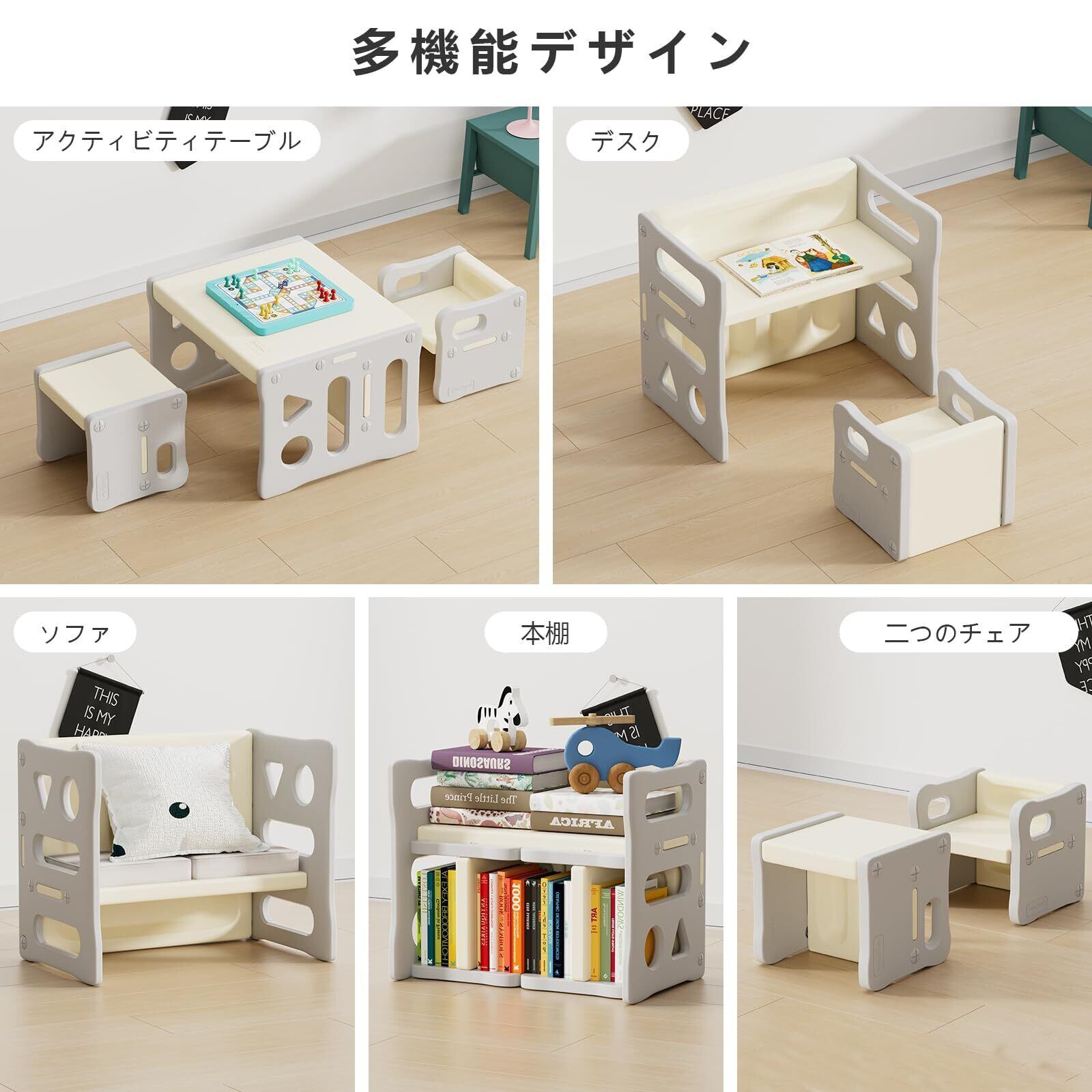 【多機能設計】さまざまなニーズに対応する多機能設計。 ソファ、アクティビティテーブル、学習机として使える子供用テーブル&チェアセットです。 子どもたちはテーブルで食べたり、書いたり、遊んだりすることができます。 日常生活のさまざまなシーンに対応します。
