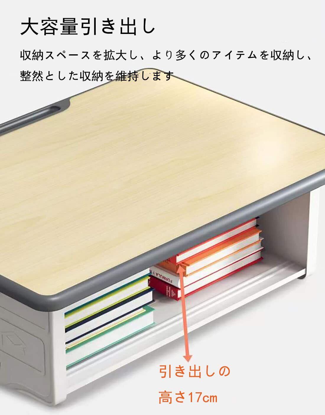 ✨机には大容量のトレーが付いており、文房具や教科書をすっきりまとめて収納可能です。勉強スペースを整理整頓し、集中できる環境を作り出します。