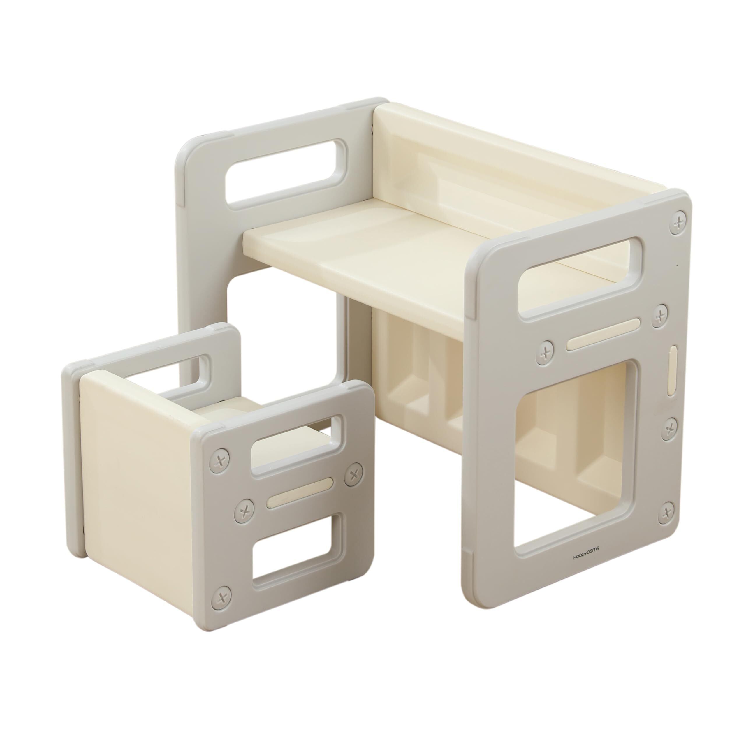 OSJ 子供用テーブル 多機能 子供用チェア 5way テーブルセット 学習デスク ローチェア 椅子 学習机 北欧 テーブル 勉強 お絵描き 誕生日 3点セット 保育園 幼稚園 組立簡単 グレー+ホワイト
