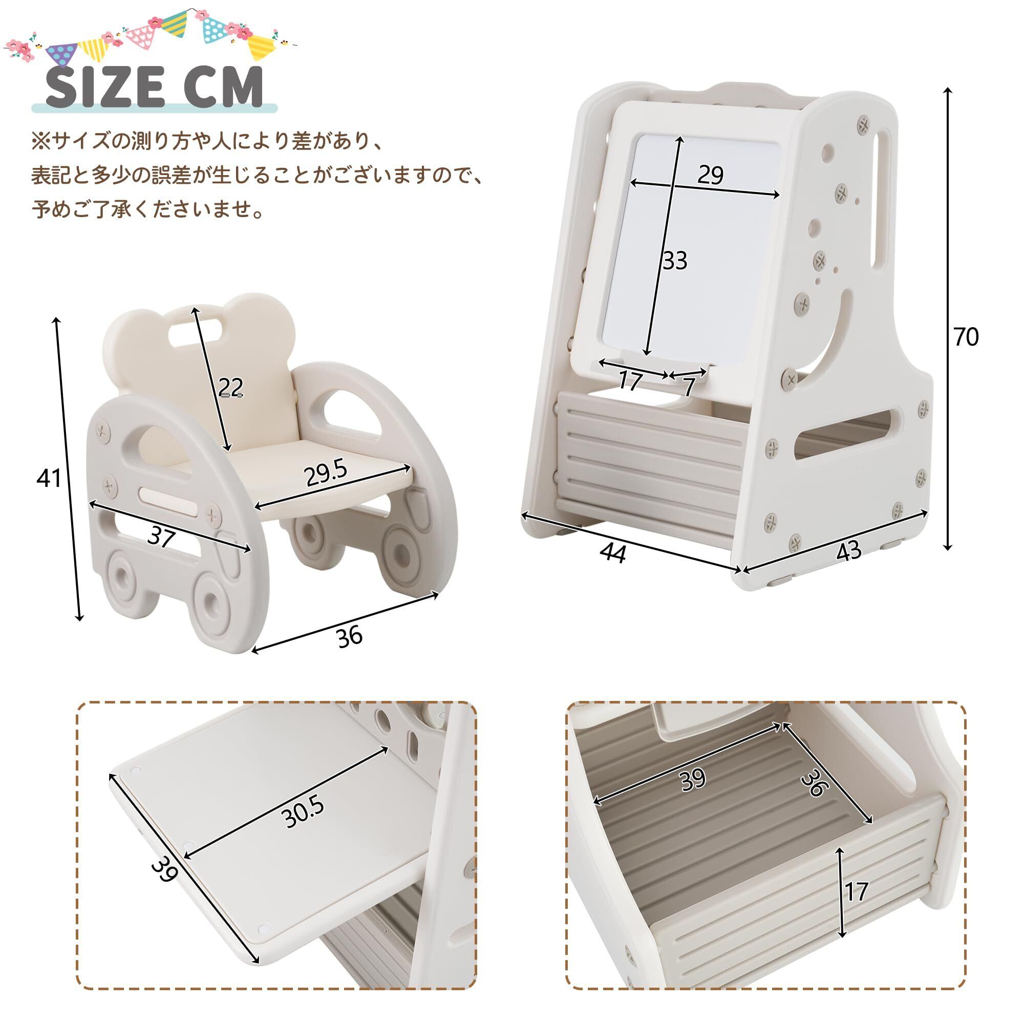 【美観性と安全性&子供のための完璧な贈り物】:おしゃれでかわいいデザインは子供部屋に調和し、雰囲気も明るくなります。また、丸角加工で、お子さまがぶつかっても怪我の心配はない。脚部に滑り止めがついており、フローリングをキズから守ります。テーブルは子供と一緒に成長し、読書、絵画、友達作りをします。誕生日やクリスマスのためのユニークなギフトを受け取ると、子供たちは喜びます。