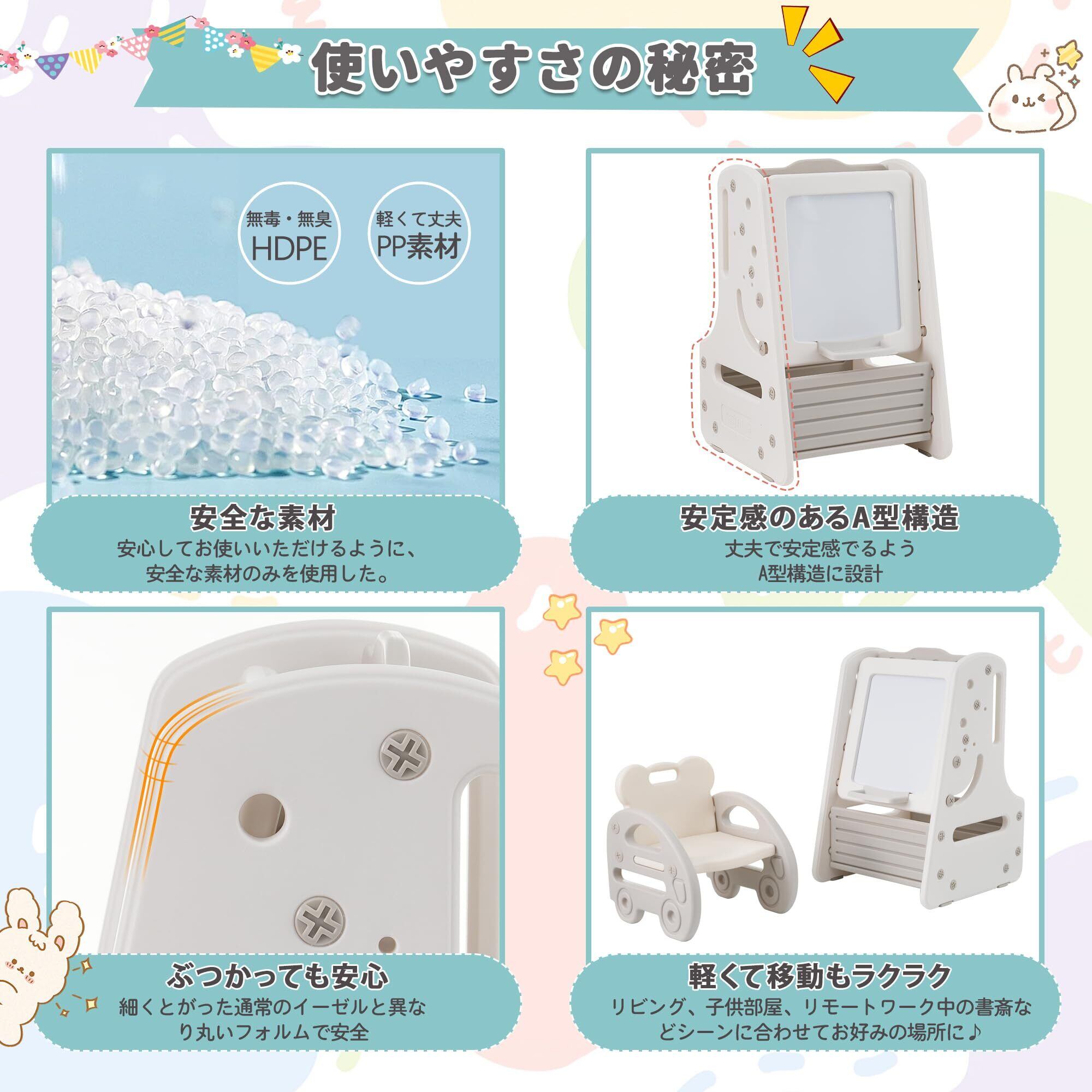 【高品質な素材】安心安全なHDPE素材、無毒無味そしてノンホルムアルデヒド、2歳頃からお絵かき、おままごと、ぬりえ、粘土遊びなど幼児学習に最適です。HDPE素材は、耐久性があり、長期間にわたって使用することができます。また、その滑らかな表面は、簡単に拭き取ることができ、清潔さを保つのに便利です。