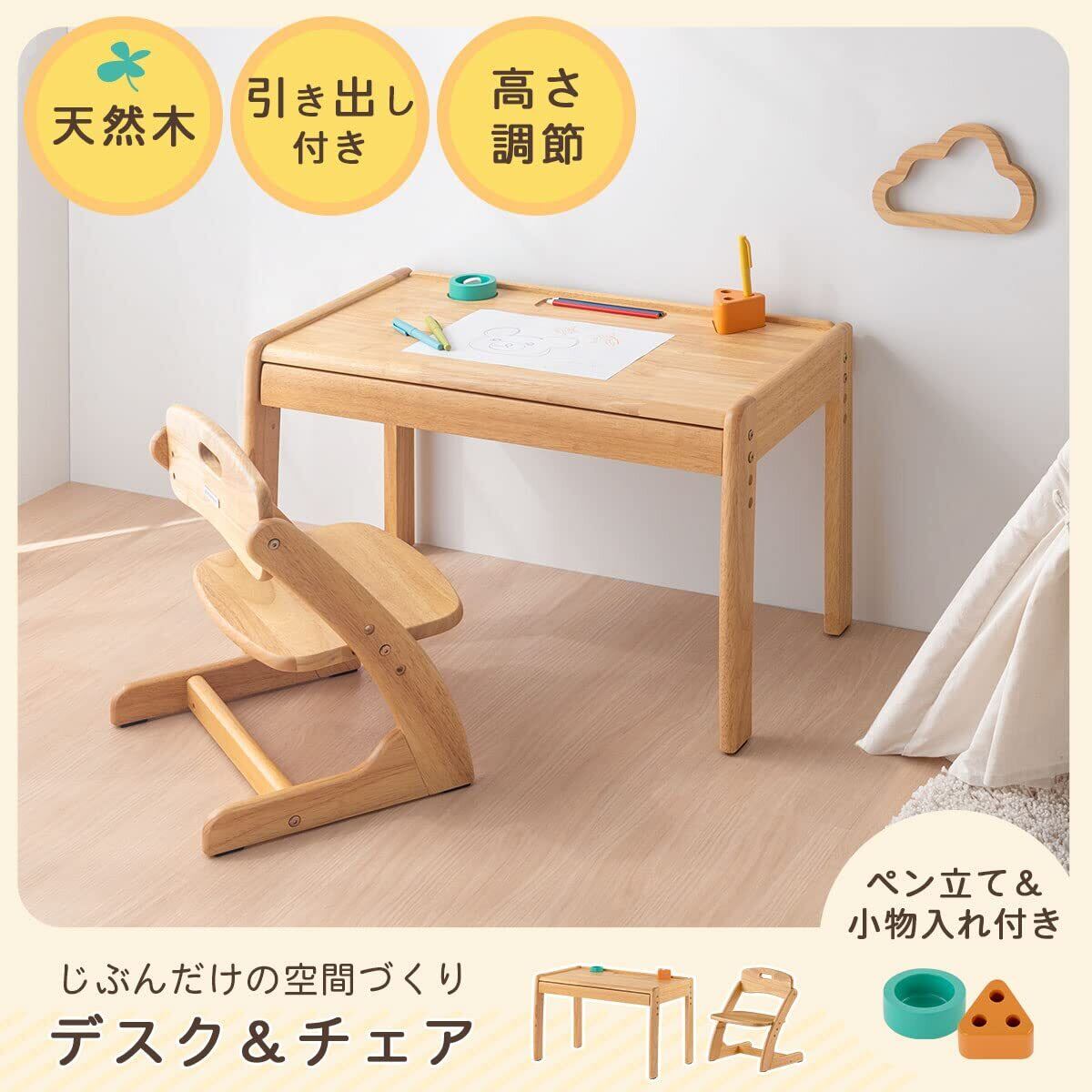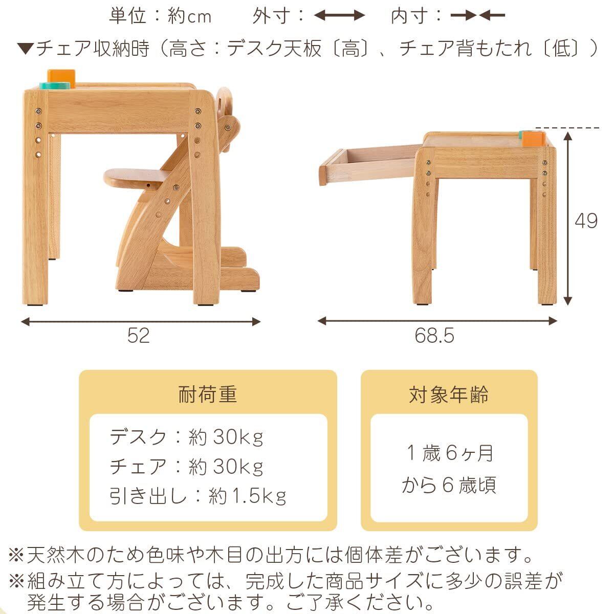 ぼん家具 木製 キッズデスク チェア 2点セット 高さ調節可能 子供用机 学習机 〔机いすセット〕
