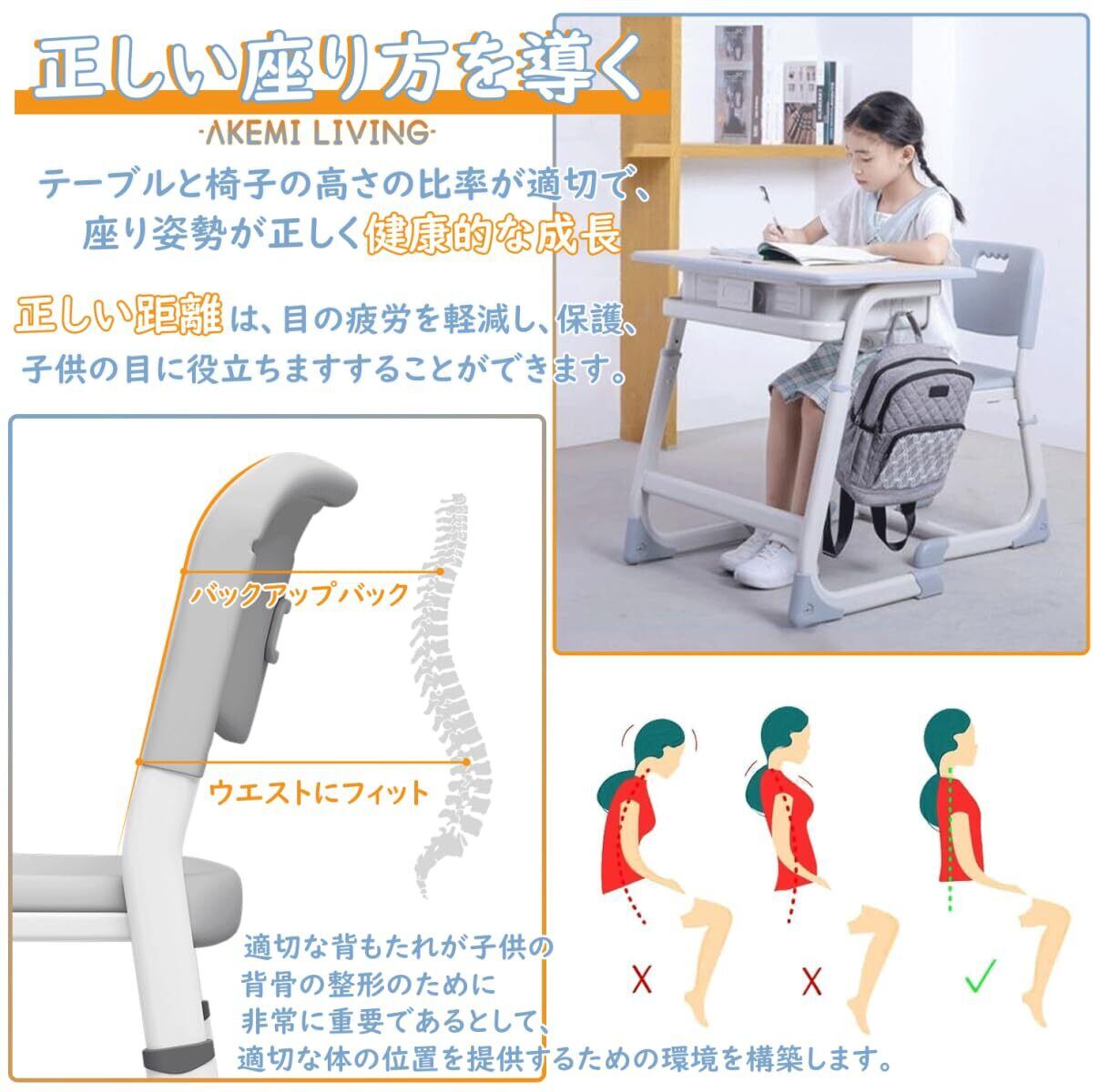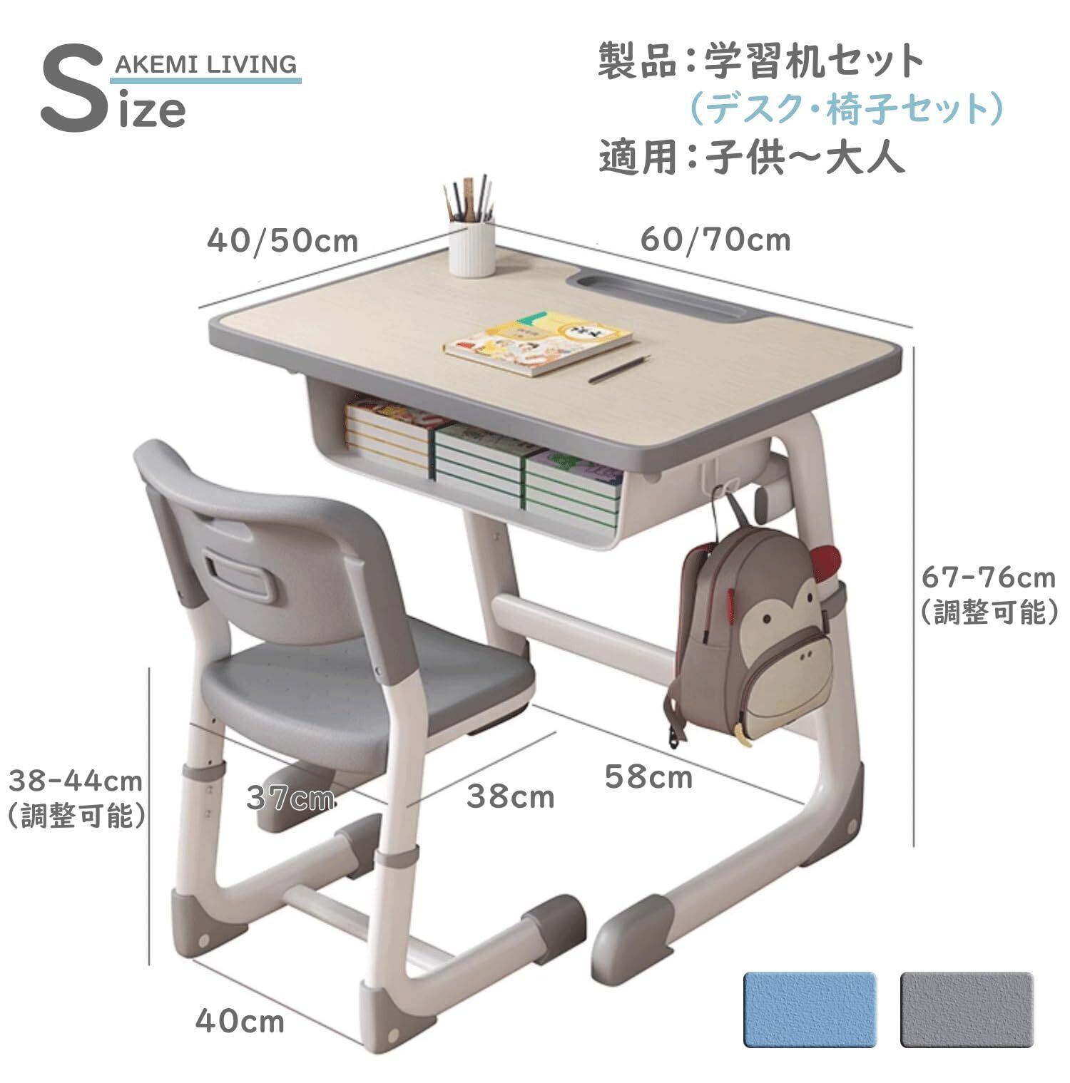 勉強机 学習机セット 子供用 デスク・椅子セット 高さ調整可能 キッズデスクセット 多機能 引き出し付き 家庭用 学校用 全学年対応 組み立て不要 グレー