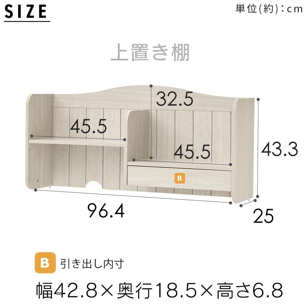 ✨上置き棚付きで、教科書や文房具をすっきり整理できます。お子様の勉強道具を手近においておけるので、作業中も効率的に載せられる便利さが特長です。
