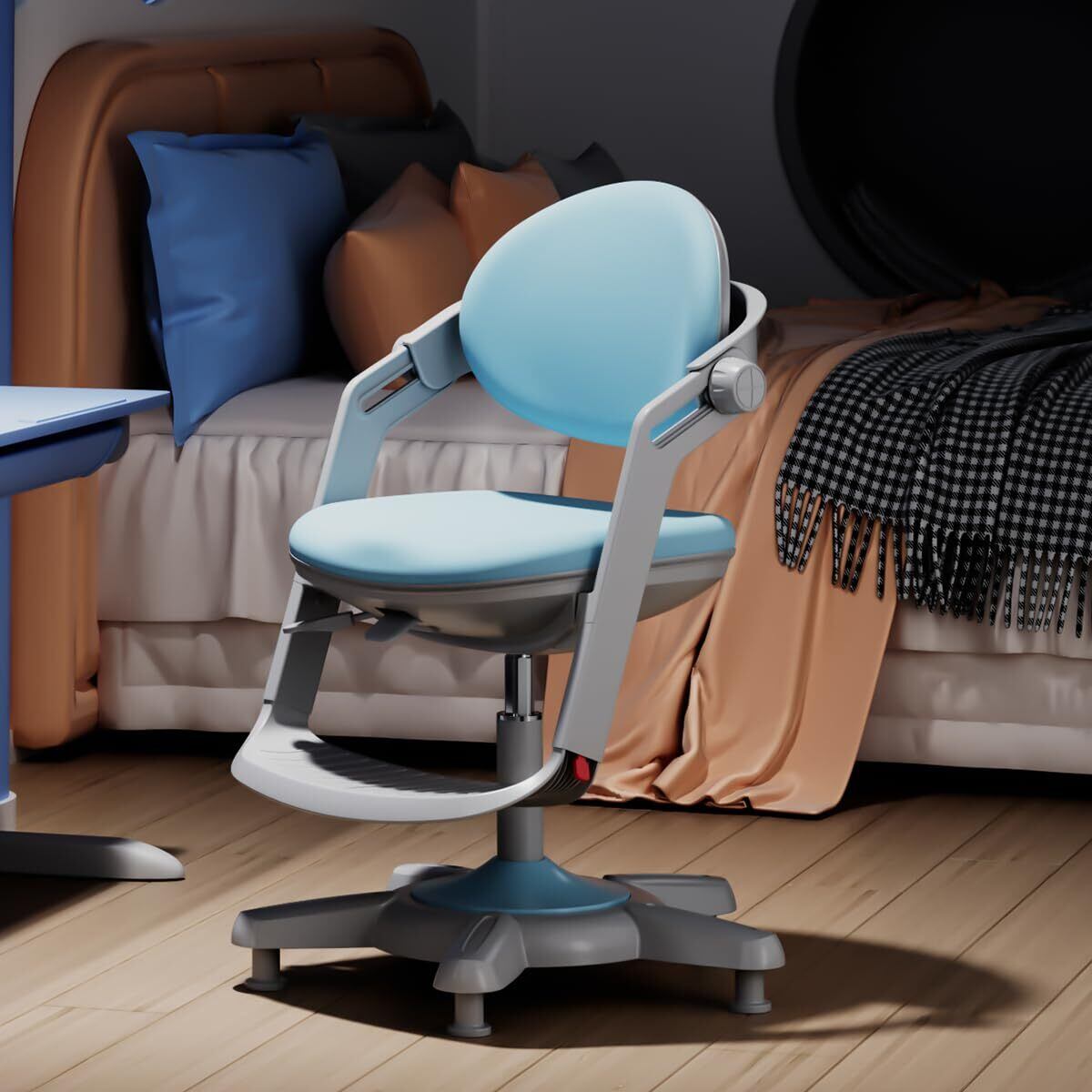 \【◆IVY 子供用勉強椅子 勉強机椅子猫背不要 姿勢矯正 キャスターなし ロック付き 足置き ハイ 高さ調整 学習チェア 子ども用小学生 かわいい ブルー】/お子様の学びを支える、安心設計のかわいい椅子です!