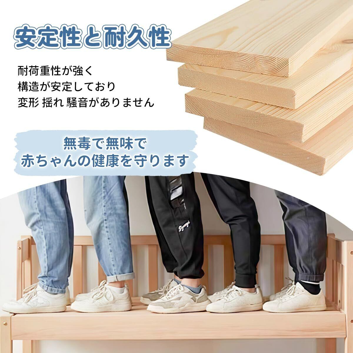✨頑丈な木製の構造は、耐震性能にも優れており、安心してお子様をお迎えできます。どんな環境でも、しっかりとした安定感を保つことができます。