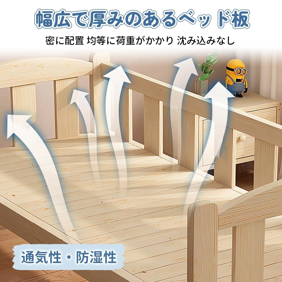 【広々とした快適な】ベッド面がより広くなり、赤ちゃんの動きに余裕を持たせることができるため、より安心して眠ることができます。さらに、脚床面が高くなっているため、下の空間が通気性がよくなり、湿気やカビ、ダニの繁殖を防ぐことができます。
