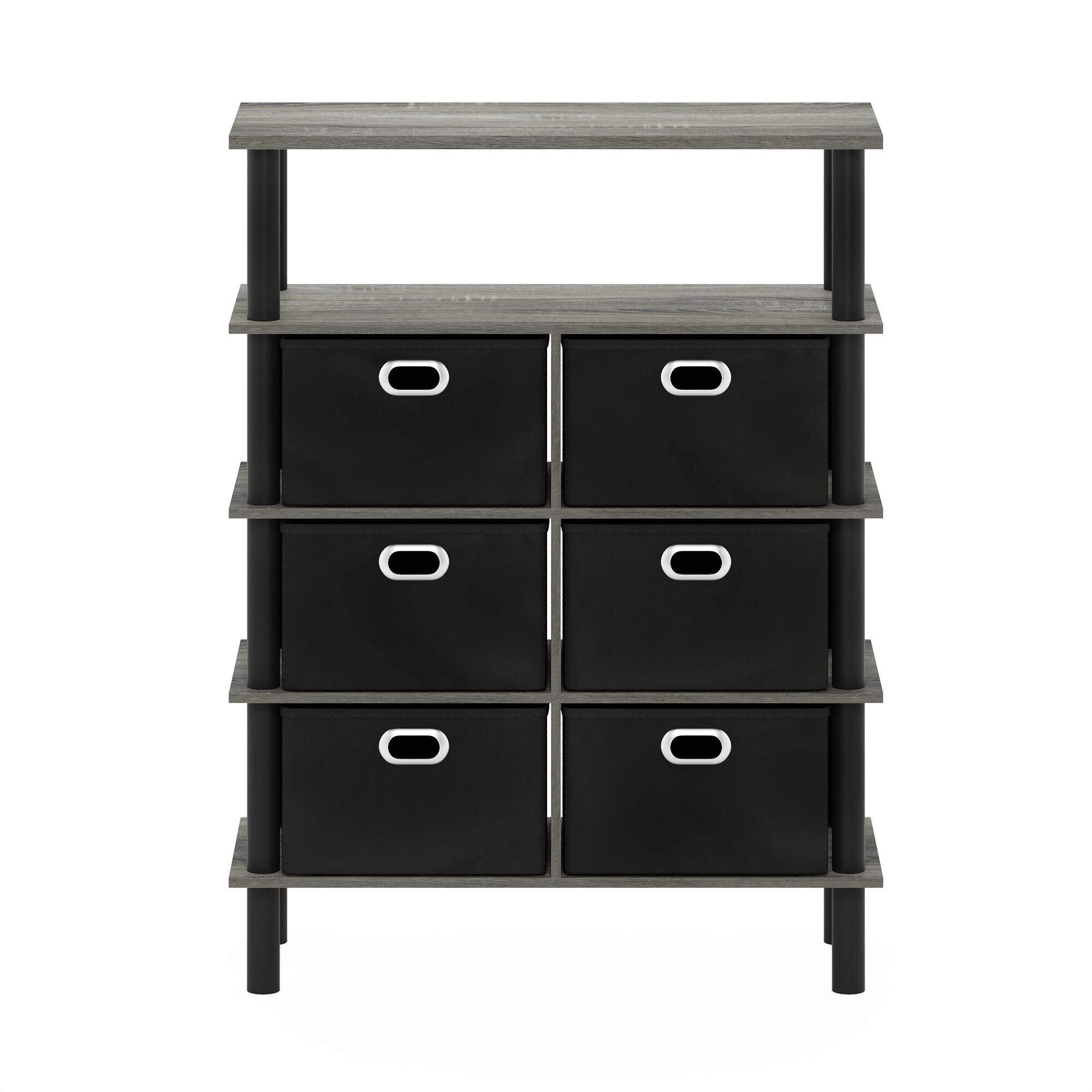 フリノ(Furinno) FRANS エントリー コンソールテーブル 4段 ツール不要組立 引き出し収納ボックス付き オープンシェルフ ソファテーブル サイドテーブル リビング/ホームオフィス/玄関向け フレンチオーク/ブラック/ブラック 【日本正規輸入品】