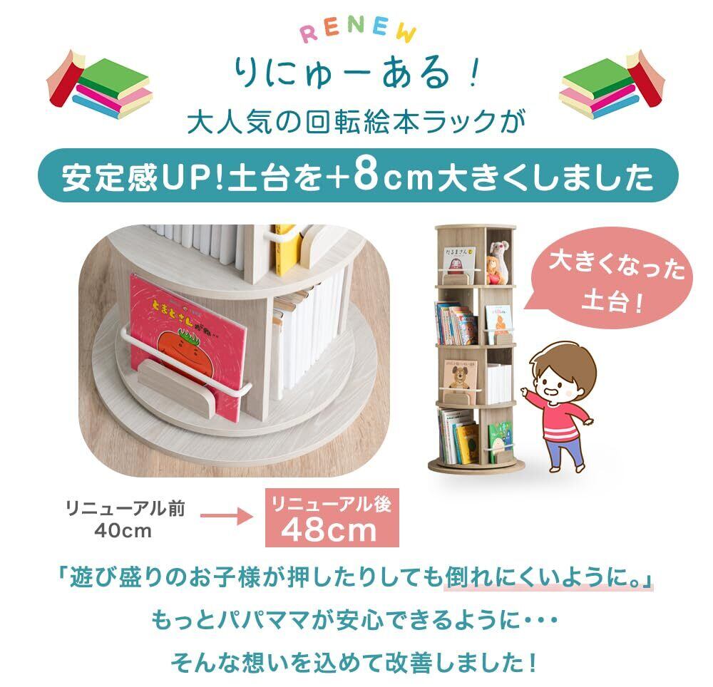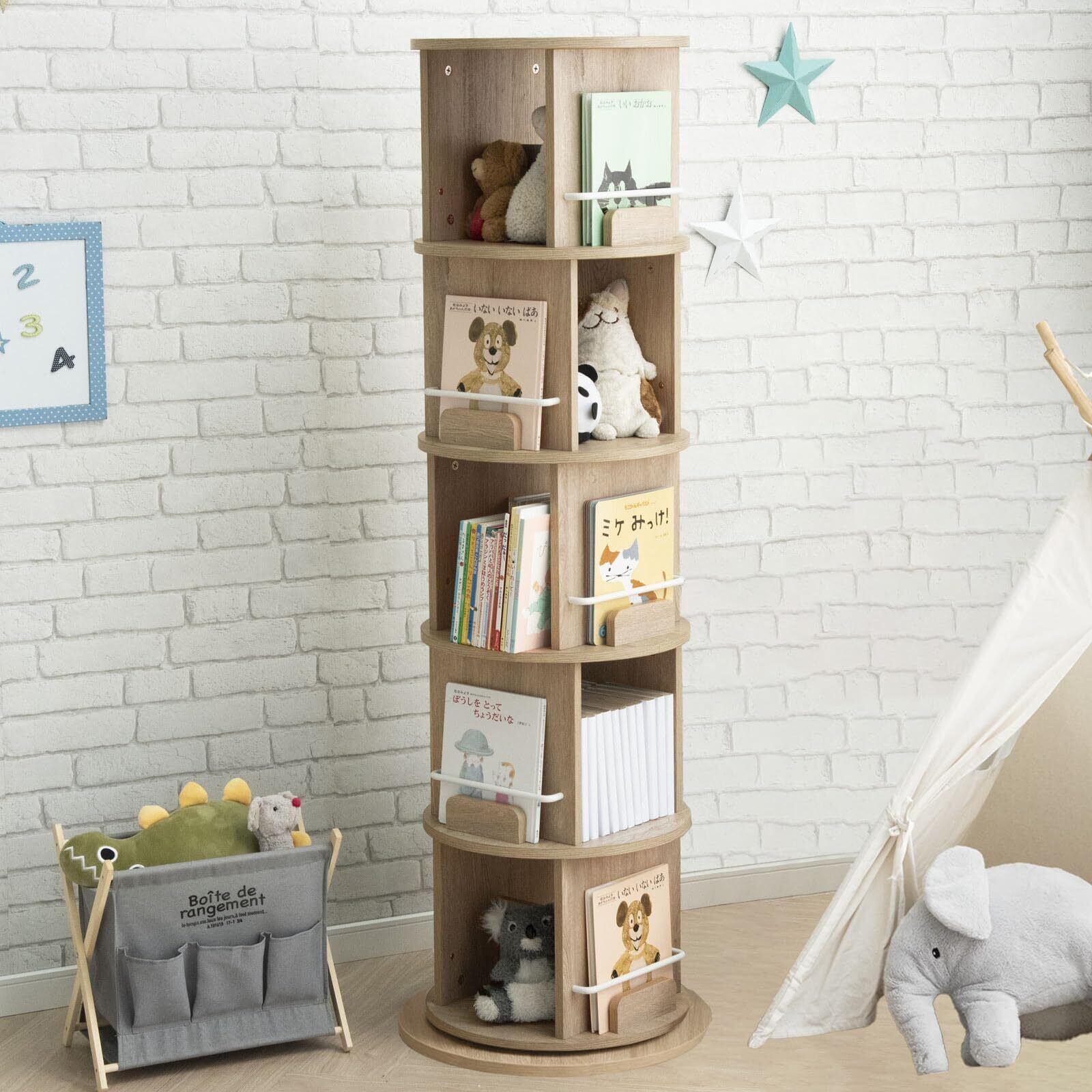 タンスのゲン 絵本ラック 回転式 5段 スリム 木製 回転 本棚 絵本棚 収納ラック 子供用 シンプル デザイン 49600275(100469)