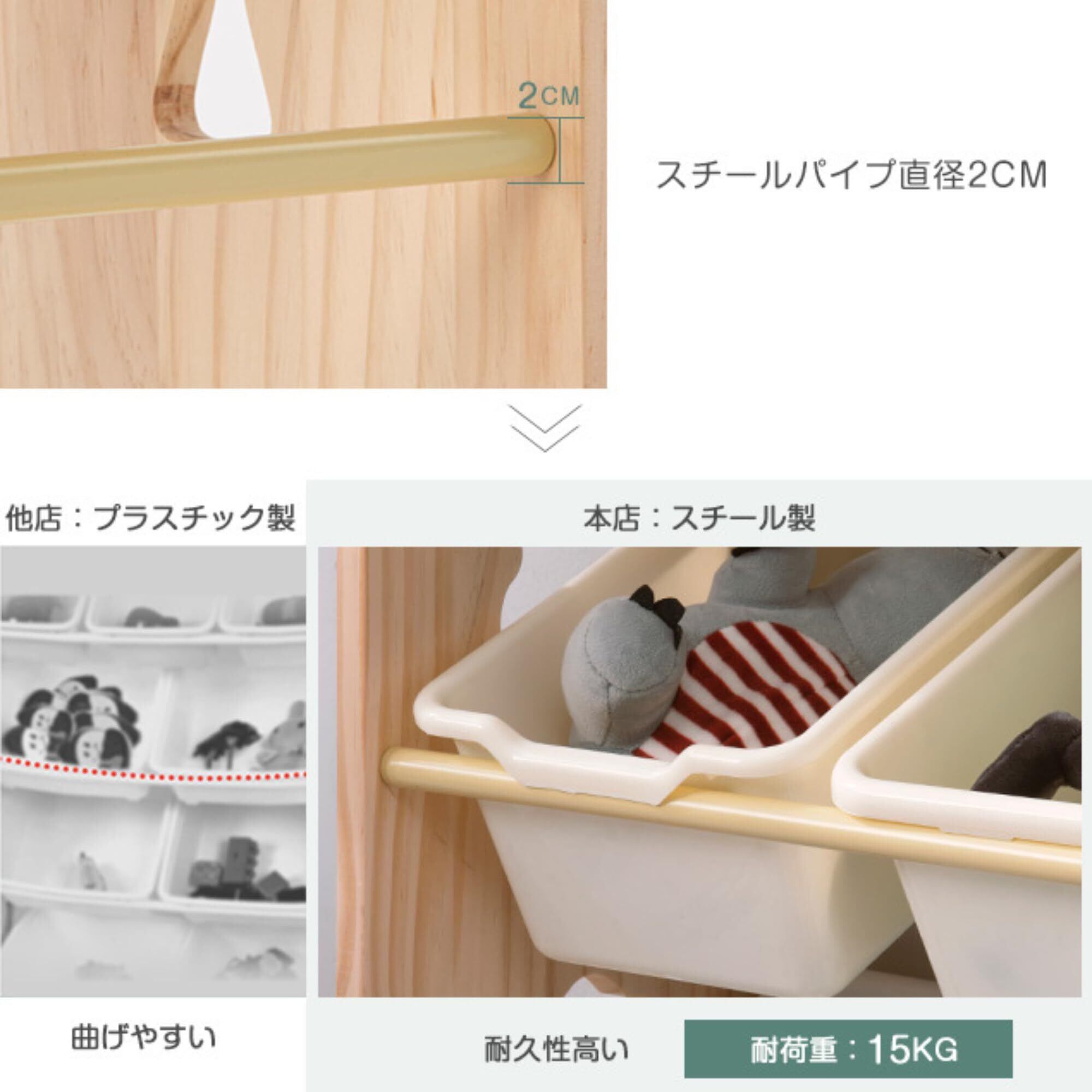 ✨おもちゃや絵本が自分で取り出しやすい高さに設計されており、楽しくお片付けができます。小さなお子様でも簡単にアクセスできるため、自立心を育む環境を提供します。