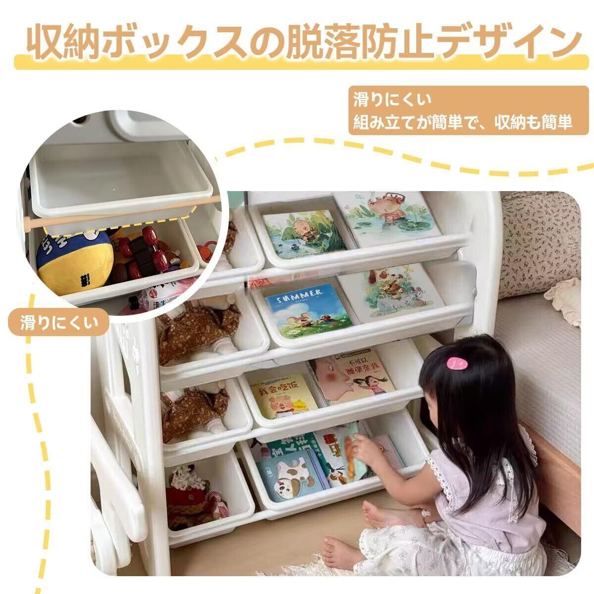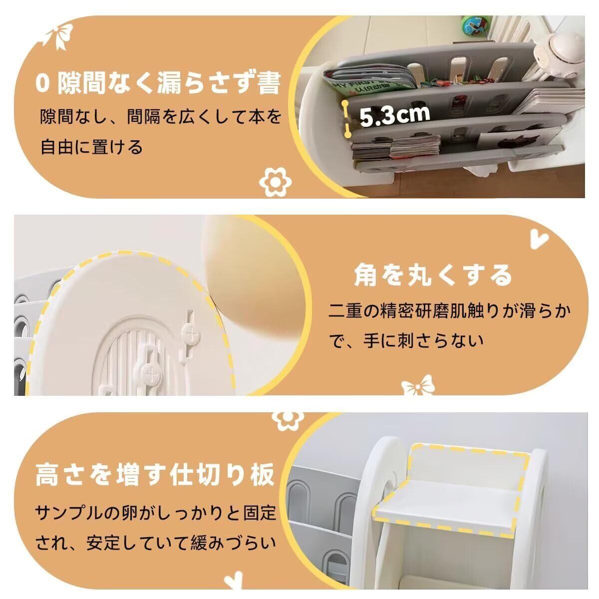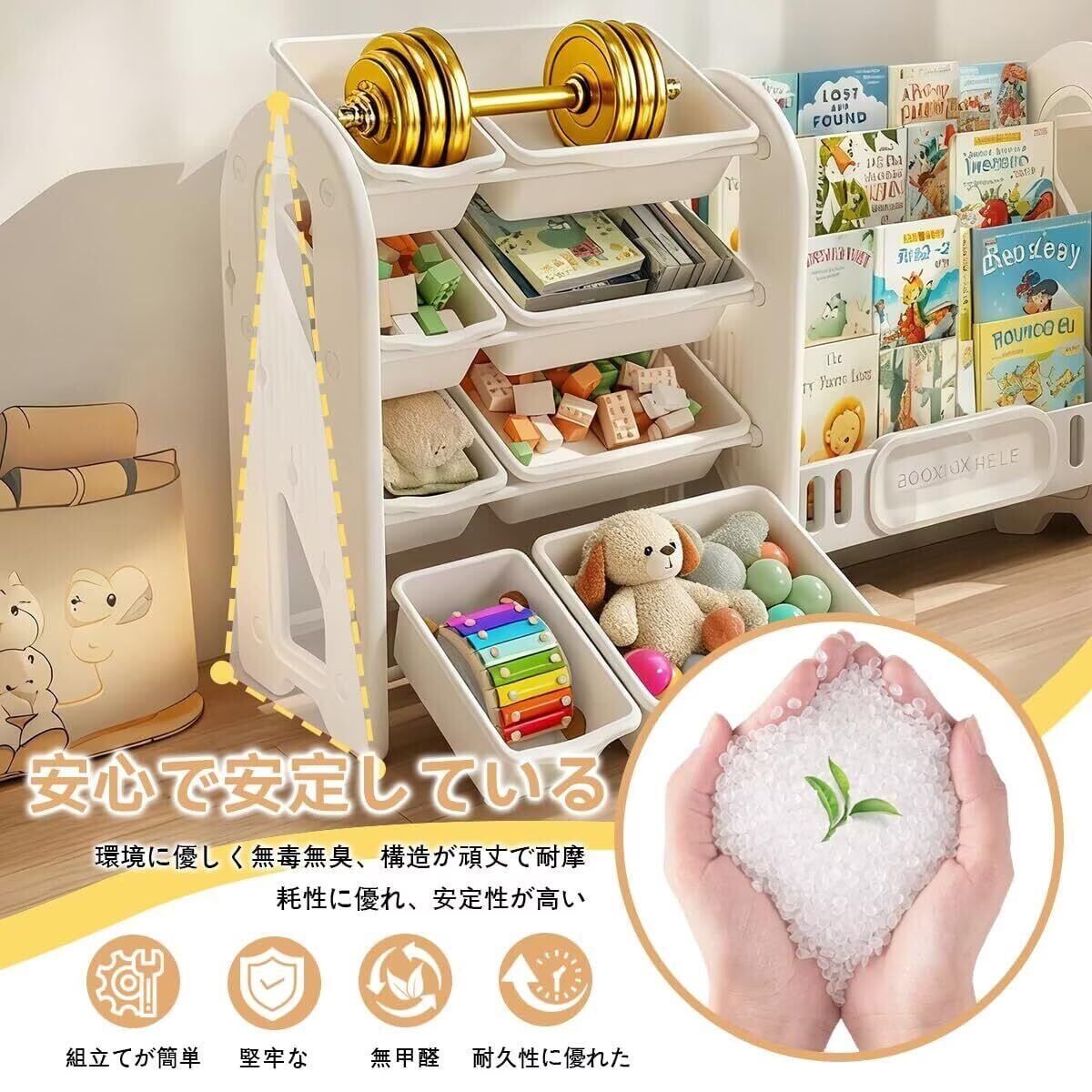 ✨頑丈な作りで安定性があり、大切なおもちゃや本をしっかりと支えます。お子様が自分で取り出しやすい高さに設計されているので、物を整理する習慣を学ぶのにもぴったりです。