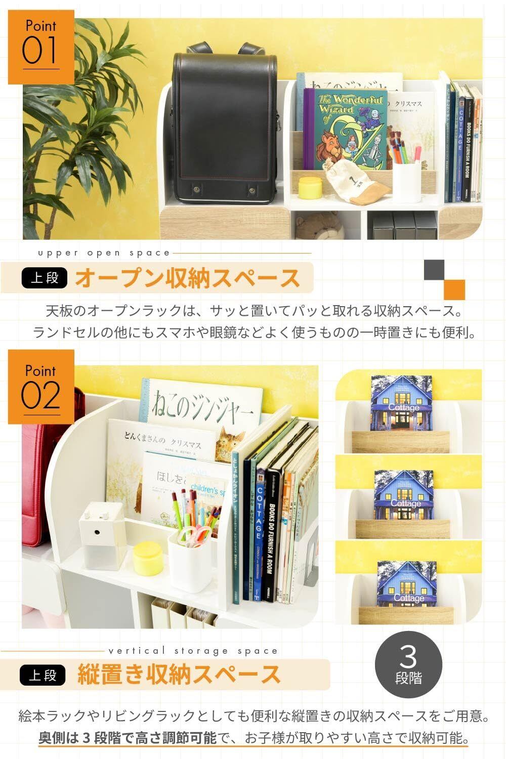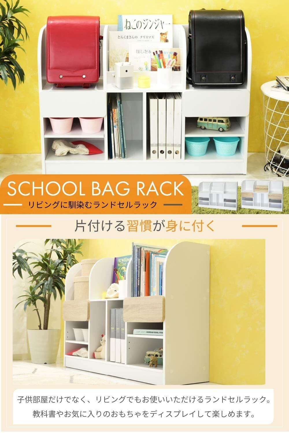 【インテリアに溶け込むデザイン性】 シンプルなデザインと、お部屋のテイストに合わせて選べる2色展開のランドセルラック。子供部屋だけでなくリビングに置いても空間を損ないません。 本体はプリント紙化粧繊維板を使用し、飲み物やクレヨンなどの汚れがついてもサッと拭き取れるため、清潔な状態を簡単に保てます。