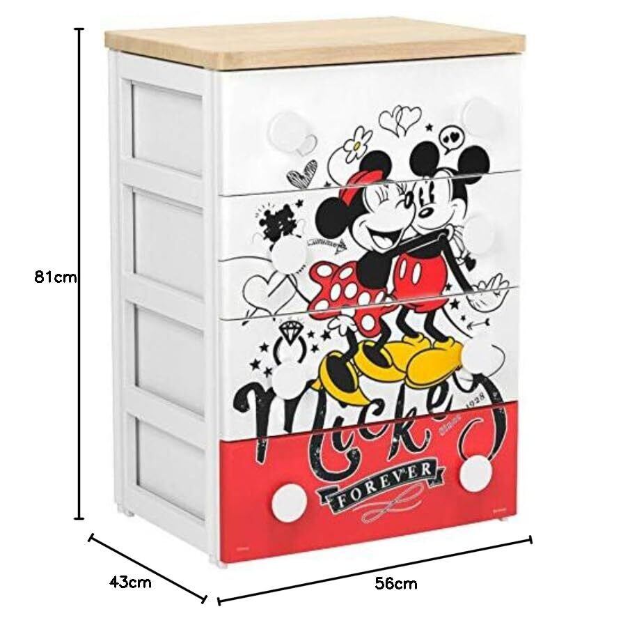 アイリスオーヤマ 収納 チェスト ディズニー ミッキー・ミニー 4段 キッズ 木天板 完成品 日本製 幅56×奥行43×高さ81㎝ NHG-W554