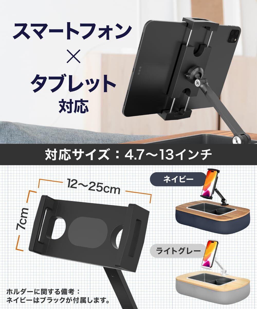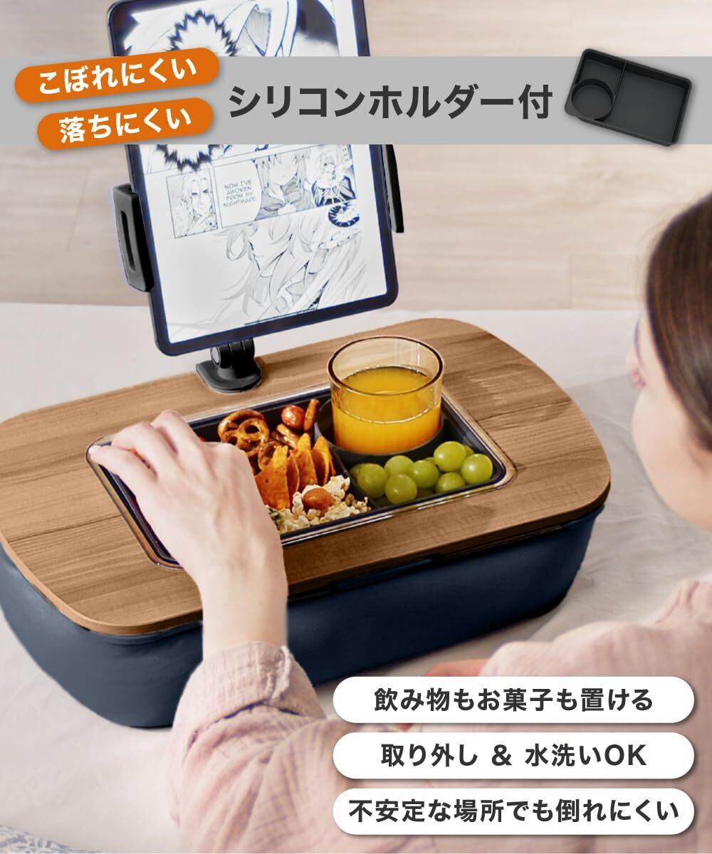 LOE(ロエ) 膝上テーブル カップホルダー付き テーブルクッション 車中泊・おやつ・お絵かき対応 ビーズクッション膝上デスク (ネイビー)