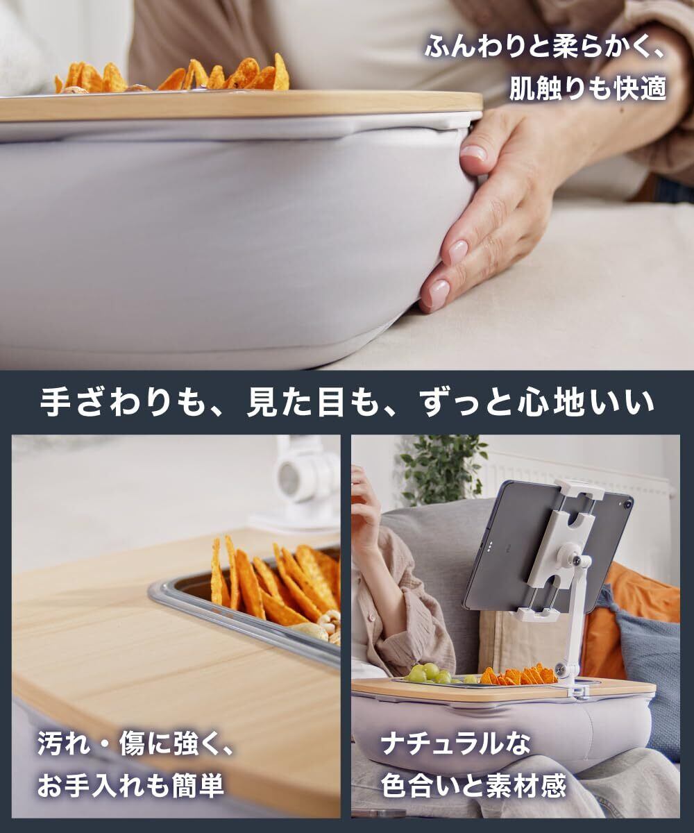 ✨膝上テーブルは柔らかなビーズクッション素材で作られており、膝に優しいフィット感があります。長時間の使用でも疲れにくく、お子様も安心して楽しめます。