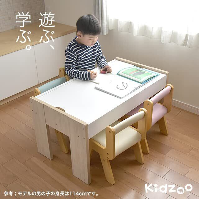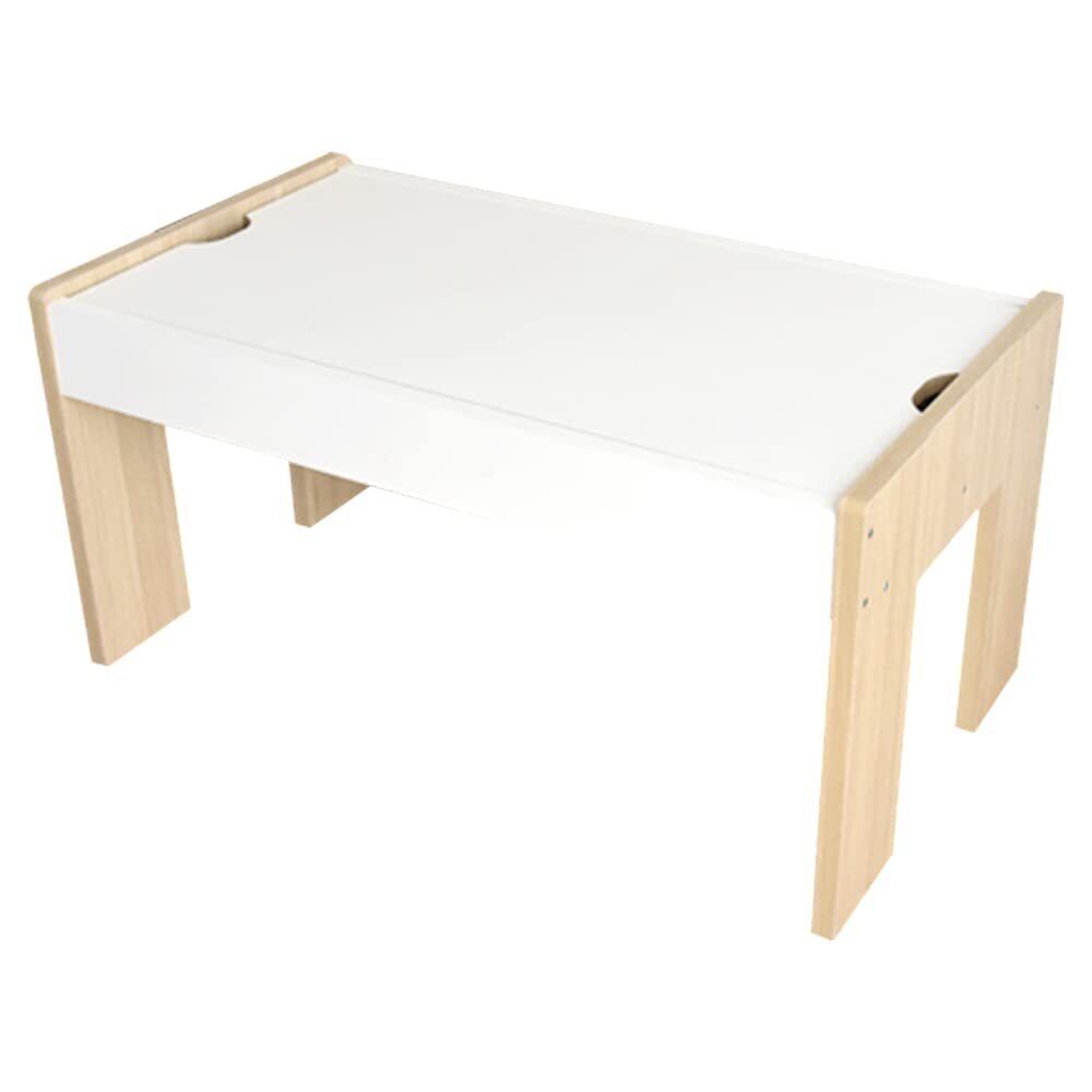 【商品仕様】 ・【広々使える90cm幅】ブロック遊びやお絵かき、リビング学習にぴったりのサイズ感。2人並んでもゆったり使える天板です。 ・【縁付き天板で安心】天板のフチが立ち上がっているので、細かいおもちゃやパズルが落ちにくく、小さなお子さまでも安心。 ・【安定感のある構造】重量約13.4kgでしっかりとした作り。動きにくく、安定感があるので安心して遊べます。 ・【角丸&フェルト付き脚】安全性を考慮した角丸加工&床を傷つけにくいフェルトクッション付き脚で、家庭内での使用に最適。 ・【対象年齢:2歳~】長く使えるシンプルデザインで、幼児期から就学前まで幅広く対応。 【商品サイズ】 ・本体サイズ:(約)W90 × D50 × H45cm ・天板サイズ:(約)W85 × D44.5cm ・重量:(約)13.4kg ・耐荷重:天板 約8kg 【素材】 ・側板:合成樹脂化粧繊維板(木目調) ・天板:合成樹脂化粧繊維板(ホワイト) 【組立】 ・組立式(組立目安時間:約1時間) ・工具・説明書付き 【備考】 ・こちらはテーブル単品です(イスは別売)。 ・kidzooシリーズのプレイテーブルとして、同シリーズのイスと組み合わせてご使用いただけます。