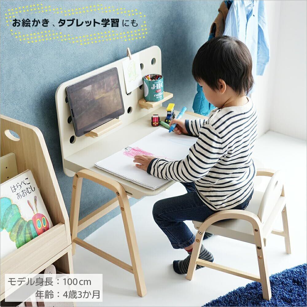 ✨アイボリー色の木製天板は、汚れが目立ちにくく、サッと拭くだけで清潔を保つことができます。お子様が使いやすいデザインなので、日常使いに最適です。