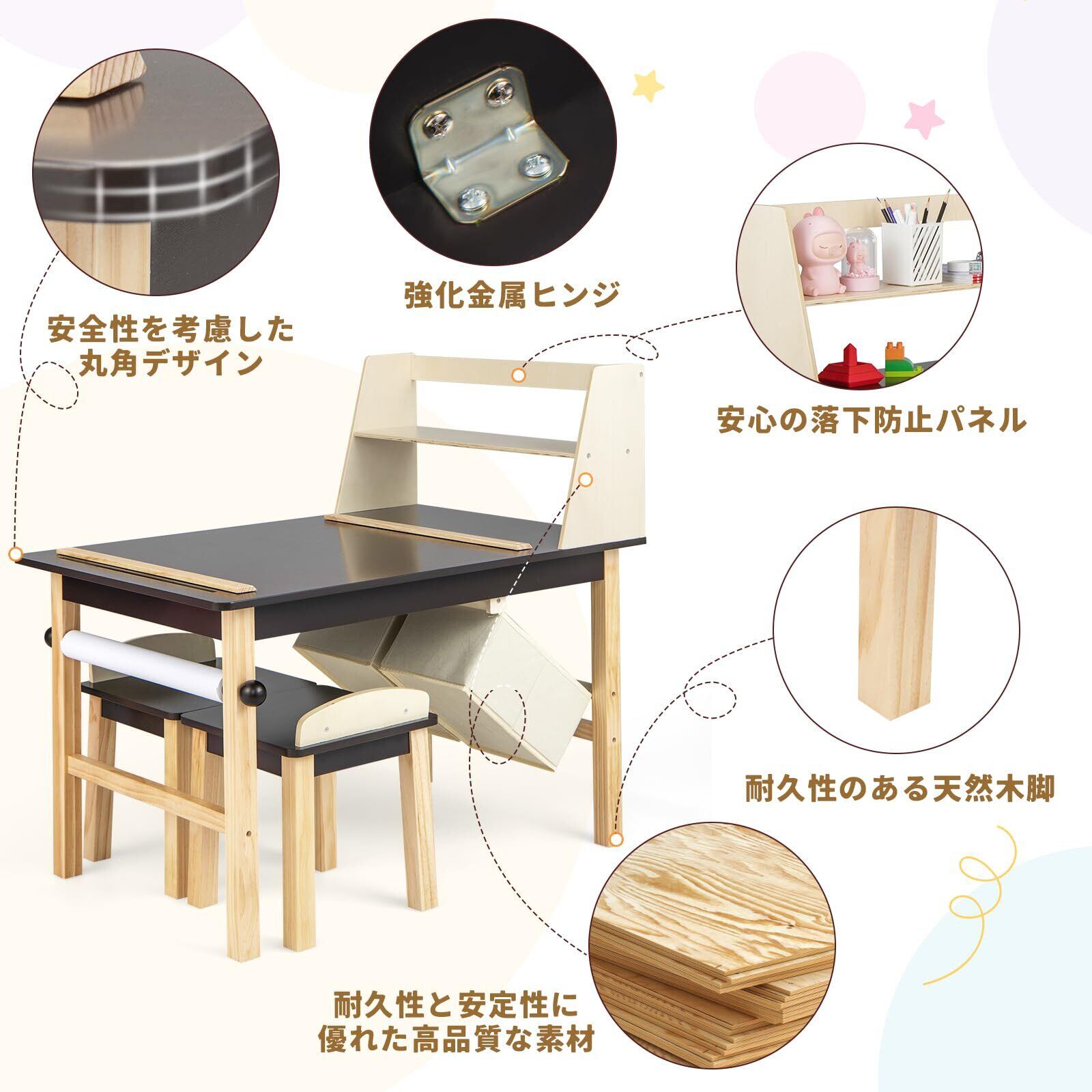 ✨【多機能なデザイン】この子ども用テーブルと椅子の3点セットは、お絵かきや学習、遊びの場として活用できます。ロール紙ホルダーと収納バスケットが付いており、使い勝手抜群!お子様が自分のスペースで自由に表現できる理想的な環境を整えます。