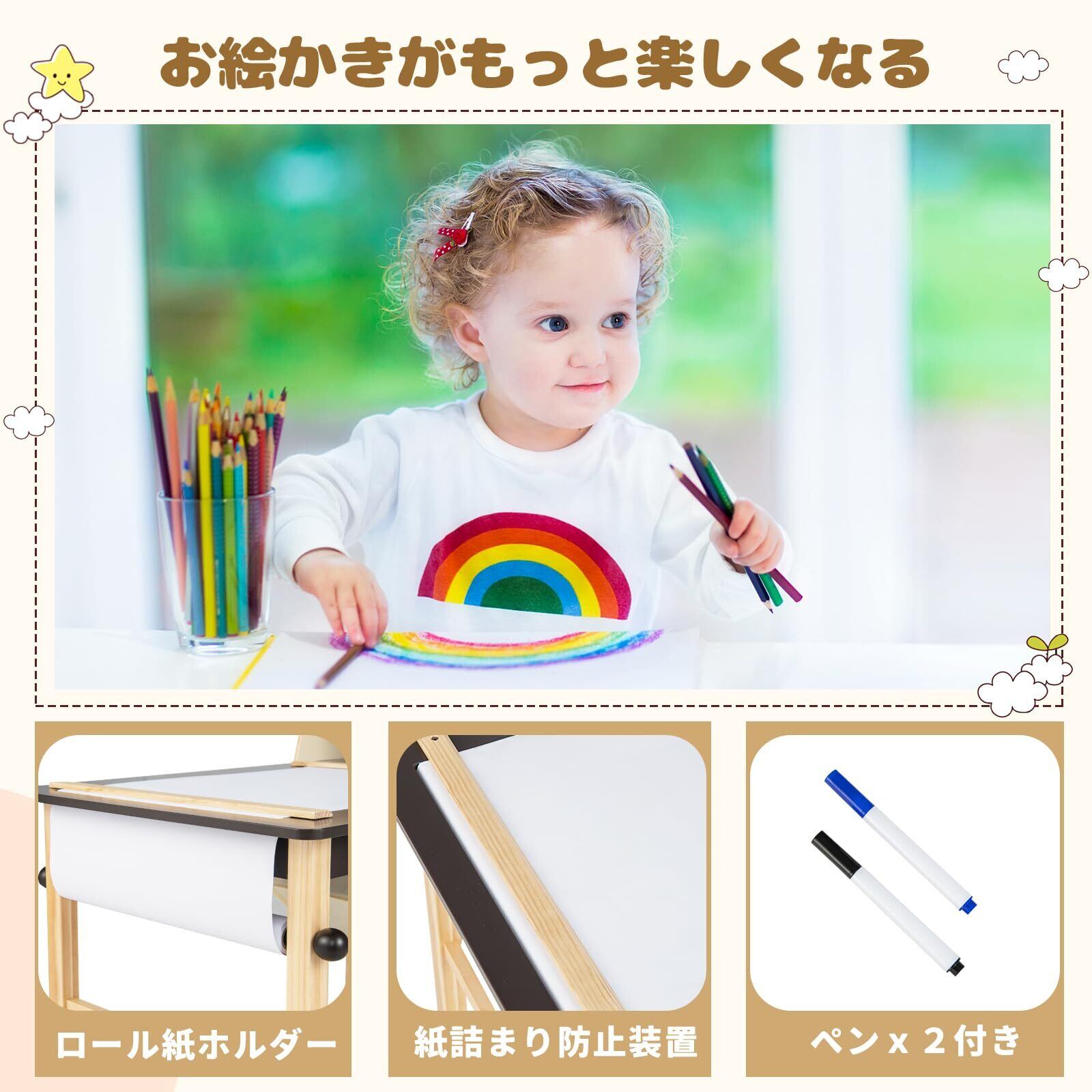 Giantex 子ども用テーブルと椅子3点セット 木製 お絵かきテーブル ロール紙ホルダー付き 収納バスケット付き 大容量収納 子供デスクセット キッズテーブルチェアセット 多機能 学習机 絵本読み 絵かき ダイニング プレイセット 入園祝い (ナチュラル)