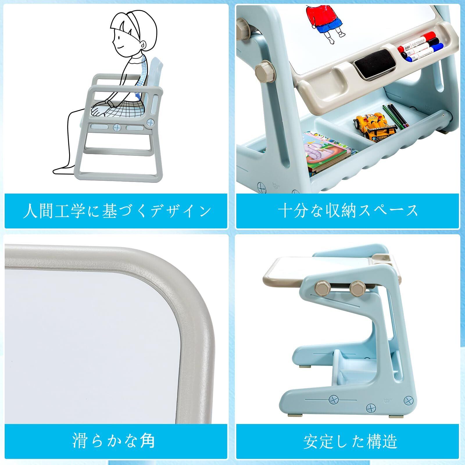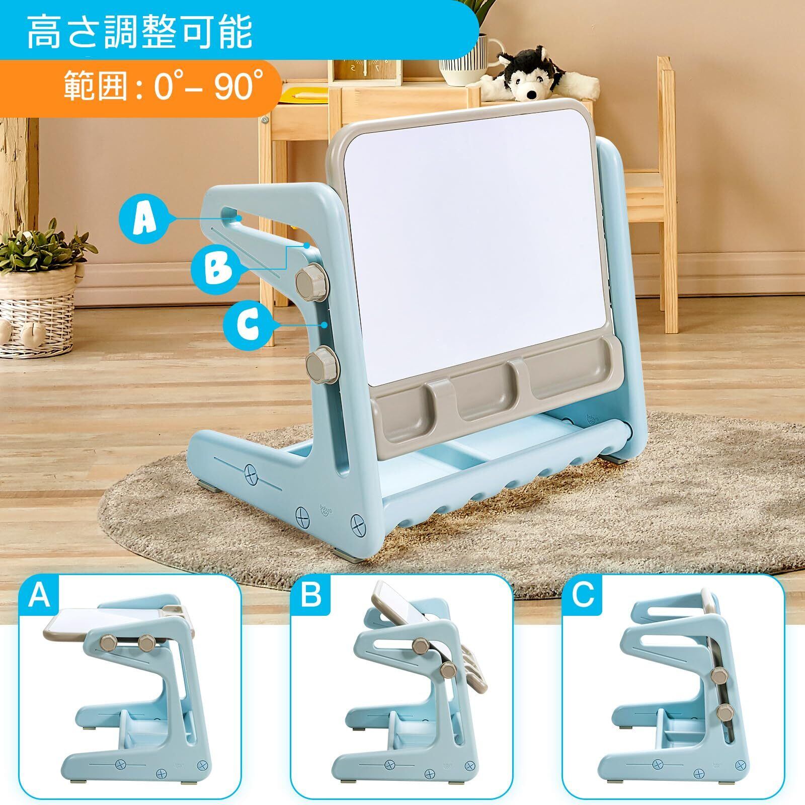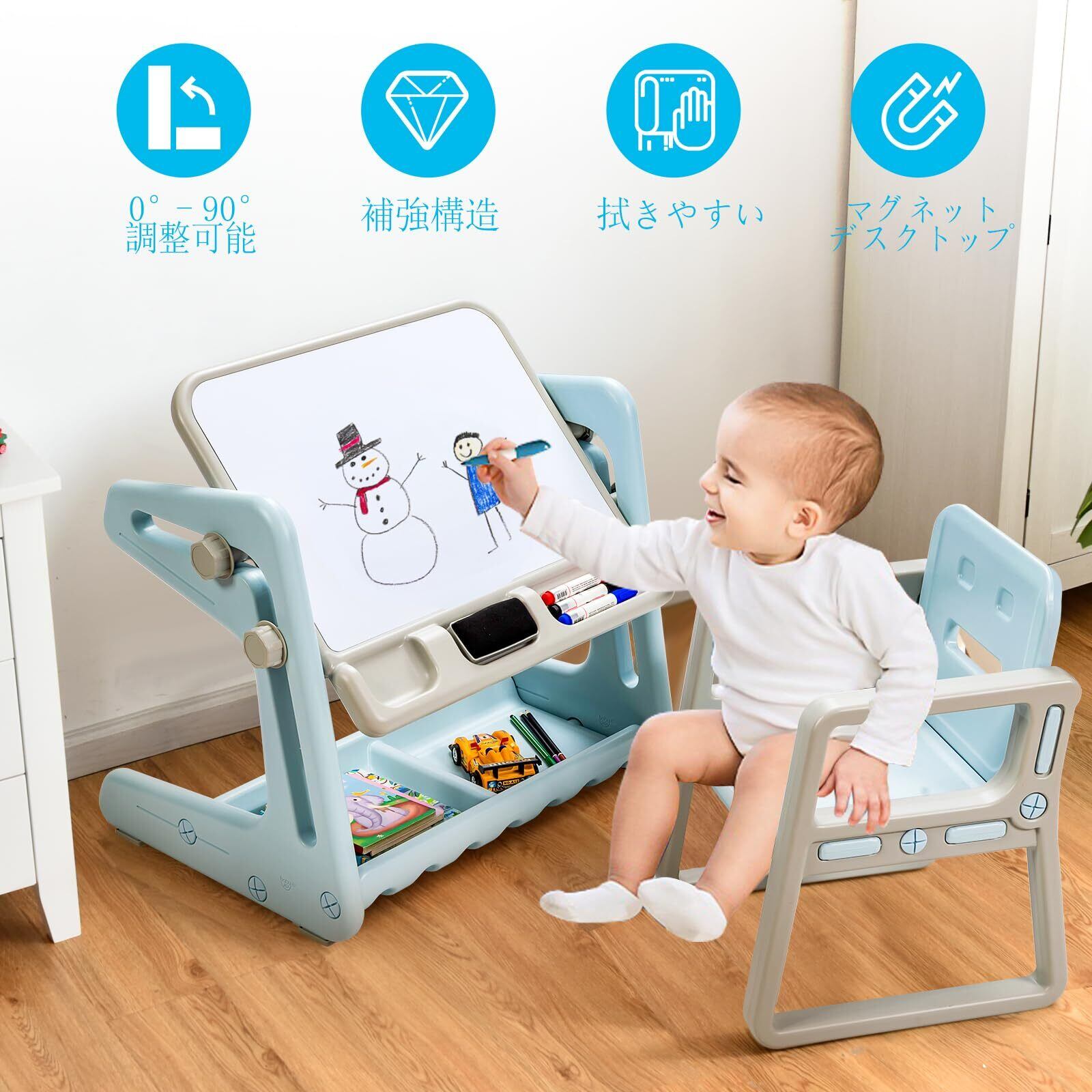 COSTWAY 子供用テーブル 椅子セット 幼児 机 キッズテーブルとチェアセット 子どもデスクセット 絵かきボード 角度調整可能 収納スペース付き 絵本読み 絵かき 多機能 入園祝い リビング学習 保育園 家庭用 (ライトブルー)